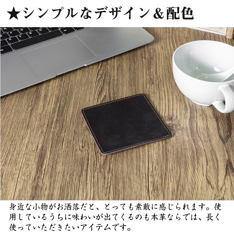 アンティーク風 本革 コースター 茶托 カップホルダー 四角形 ブラウン