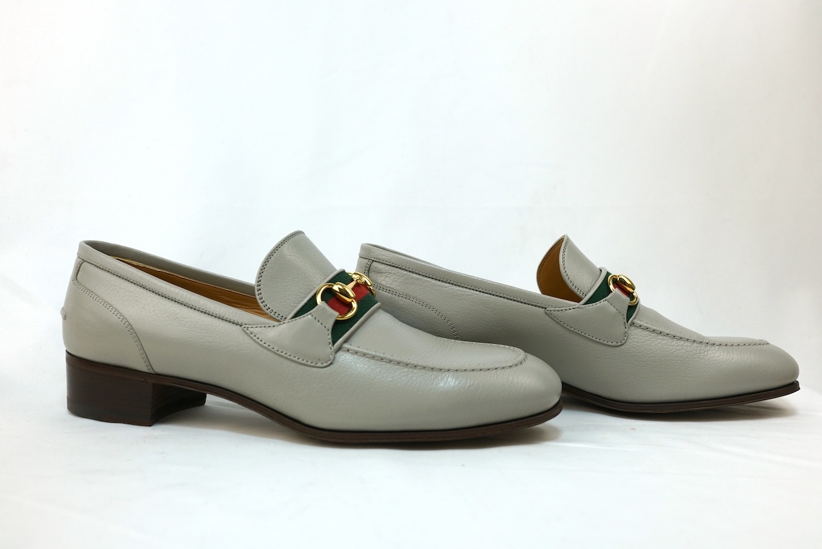 GUCCI グッチ シェリーライン レザー ホースビット ローファー グレー 8.5サイズ (約27.5cm) 655579