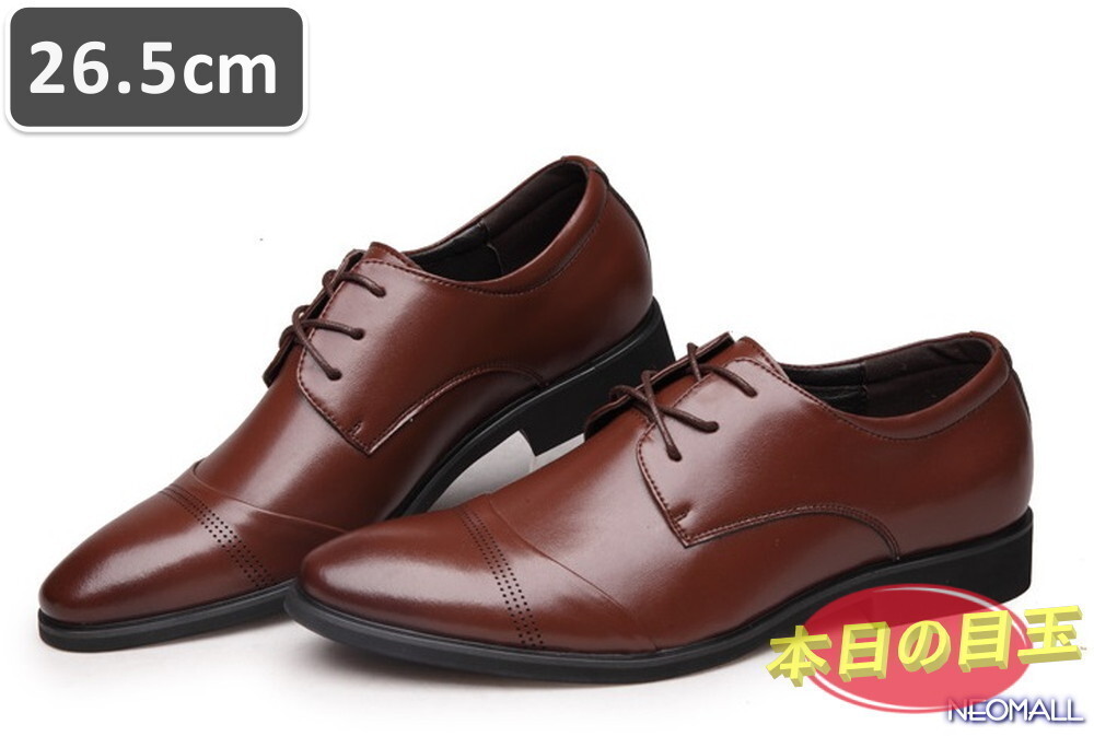 本日の目玉 ☆ メンズ ビジネス レザー シューズ ブラウン サイズ 26.5cm 革靴 靴 カジュアル 屈曲性 通勤 軽量 【447】