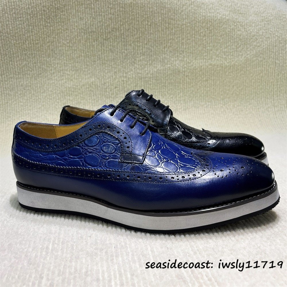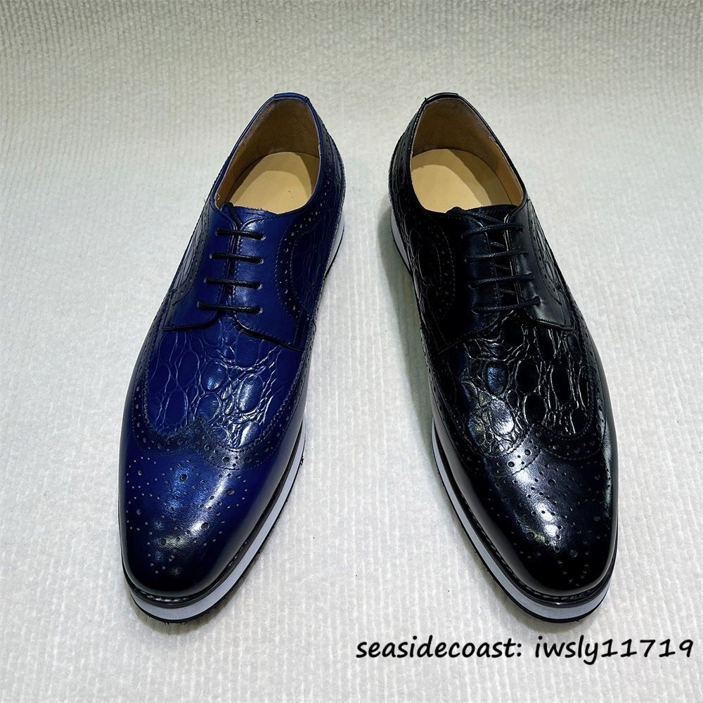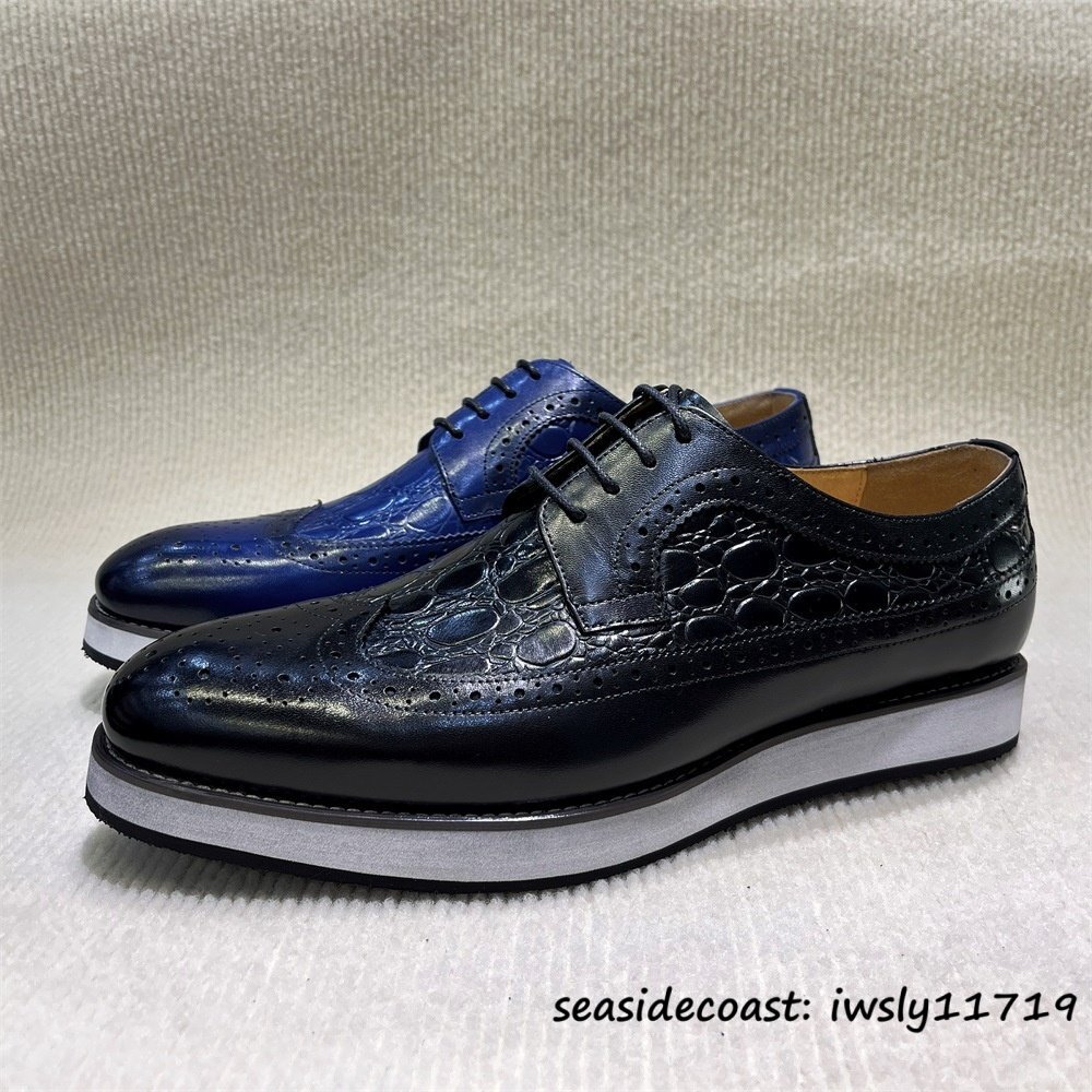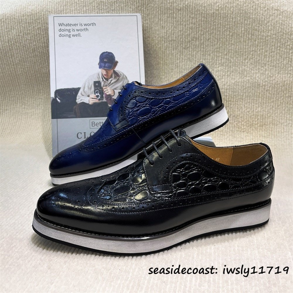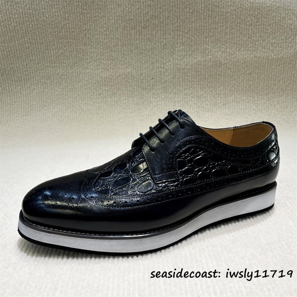 超希少★レザーシューズ メンズ 本革 ビジネスシューズ 厚底 職人手作り スリッポン ローファー スニーカー 高級牛革 革靴 ブラック 26.5cm