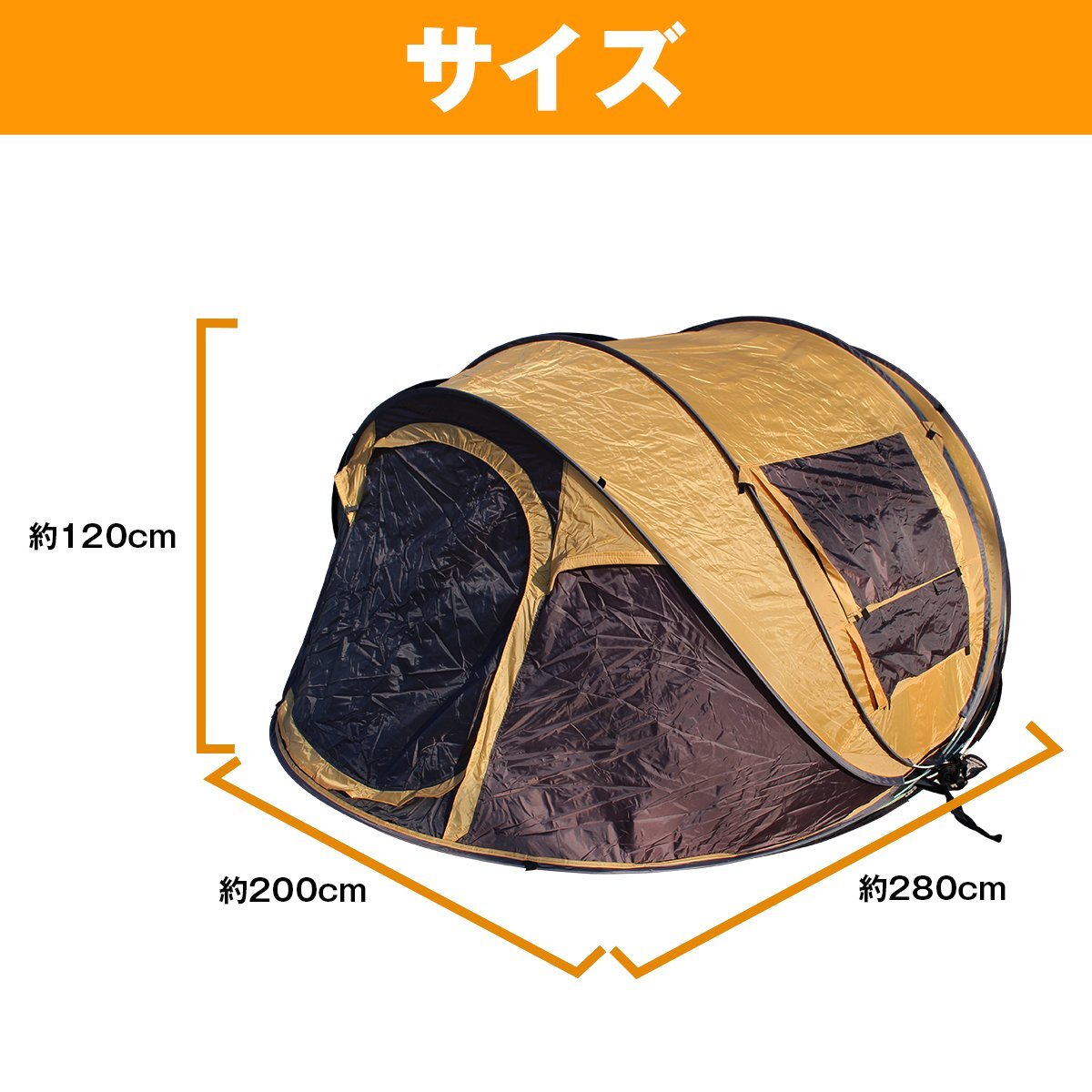 3人から4人用! 簡単組み立て! ワンタッチ式 ドーム型 テント キャンプ アウトドア ワンタッチテント ドームテント ベージュ 簡易テント