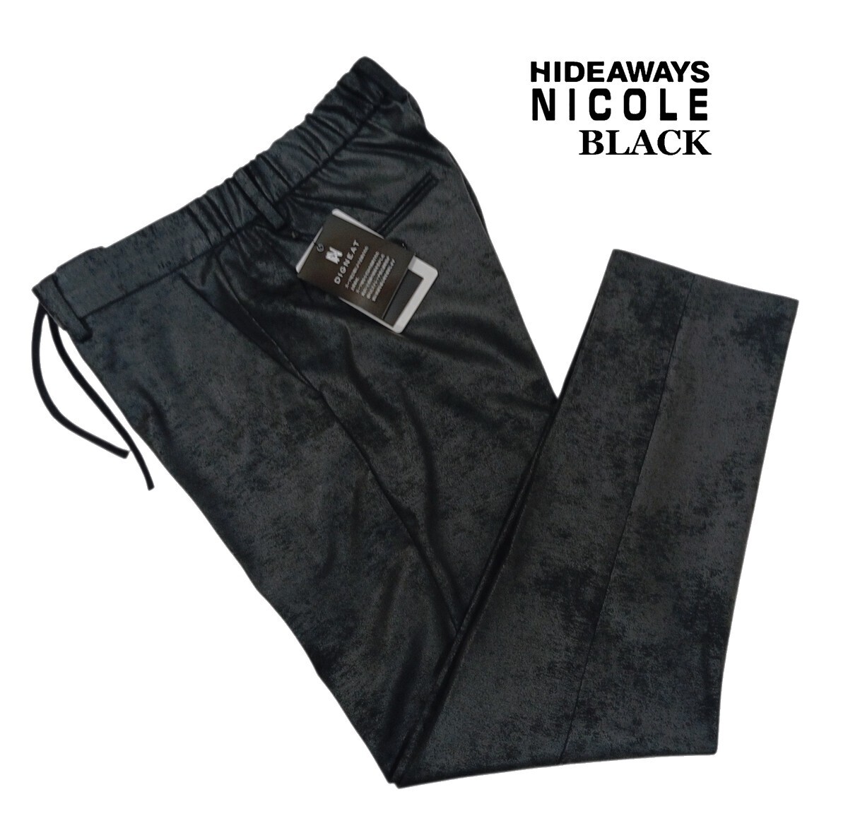 ★ブランド「HIDEAWAYS BLACK by NICOLE ハイダウェイ ブラック バイ ニコル」です。 HIDEAWAYS NICOLEのブラックラインです。 ●レザー調の【DIGNEAT】というポンチ素材を使用したキレイ目なイージーパンツです。 ●フロントジッパー付、ウエストゴム、ドローコード付、横伸びが少ない伸縮性と保形性、耐久性抜群な素材で適度な落ち感と滑らかなタッチが特長です。 ●レーヨン混の微妙な光沢感とプリプリしたヨコ張り感のある素材感は高級感があります。 ●カラー/黒系 ブラック系 ●サイズ/46(Mサイズ) ウエスト81(伸縮性あり)股上26.5 股下76.5 もも周り62 すそ周り33 ※単位はcmです。尚、多少の誤差はお許しください。 ●素材/ポリエステル85% レーヨン10% ポリウレタン5% ●状態/新品、タグ付 株式会社ニコル製です。 当方で出品している商品は全て正規品ですのでご安心ください。 |
