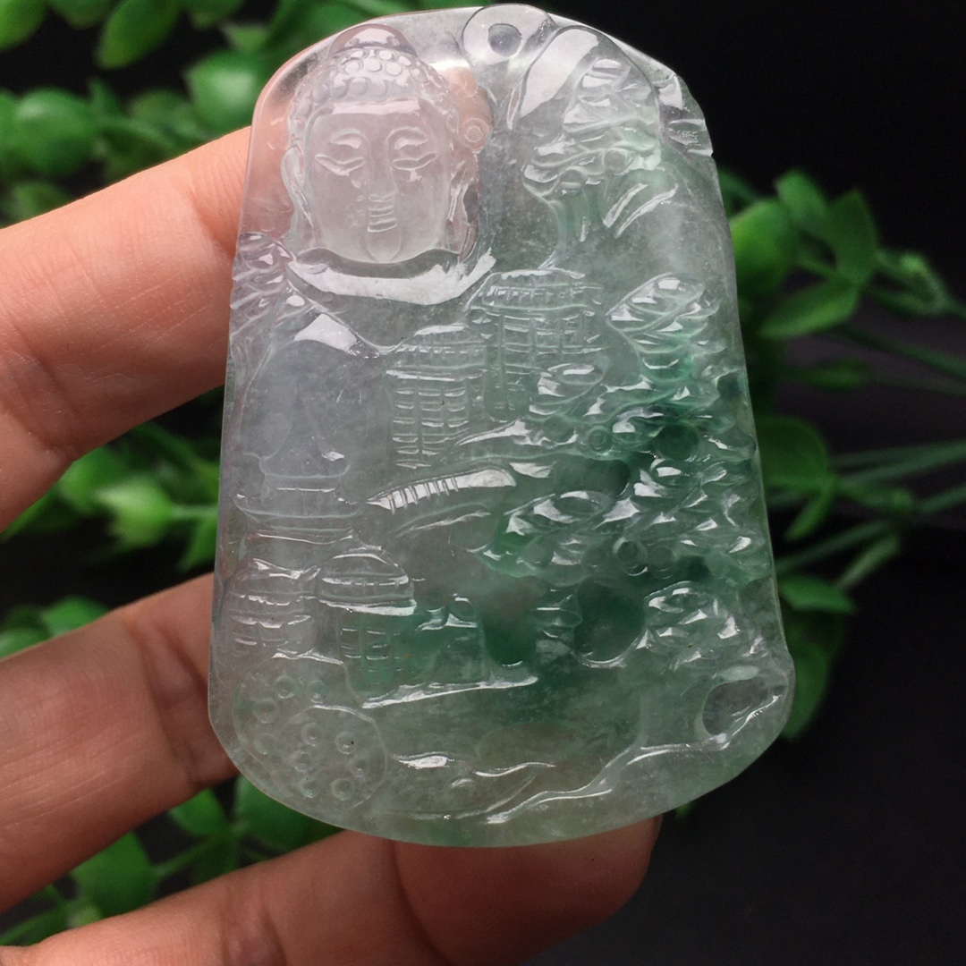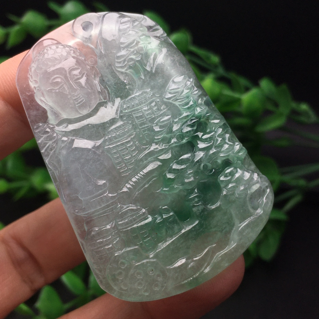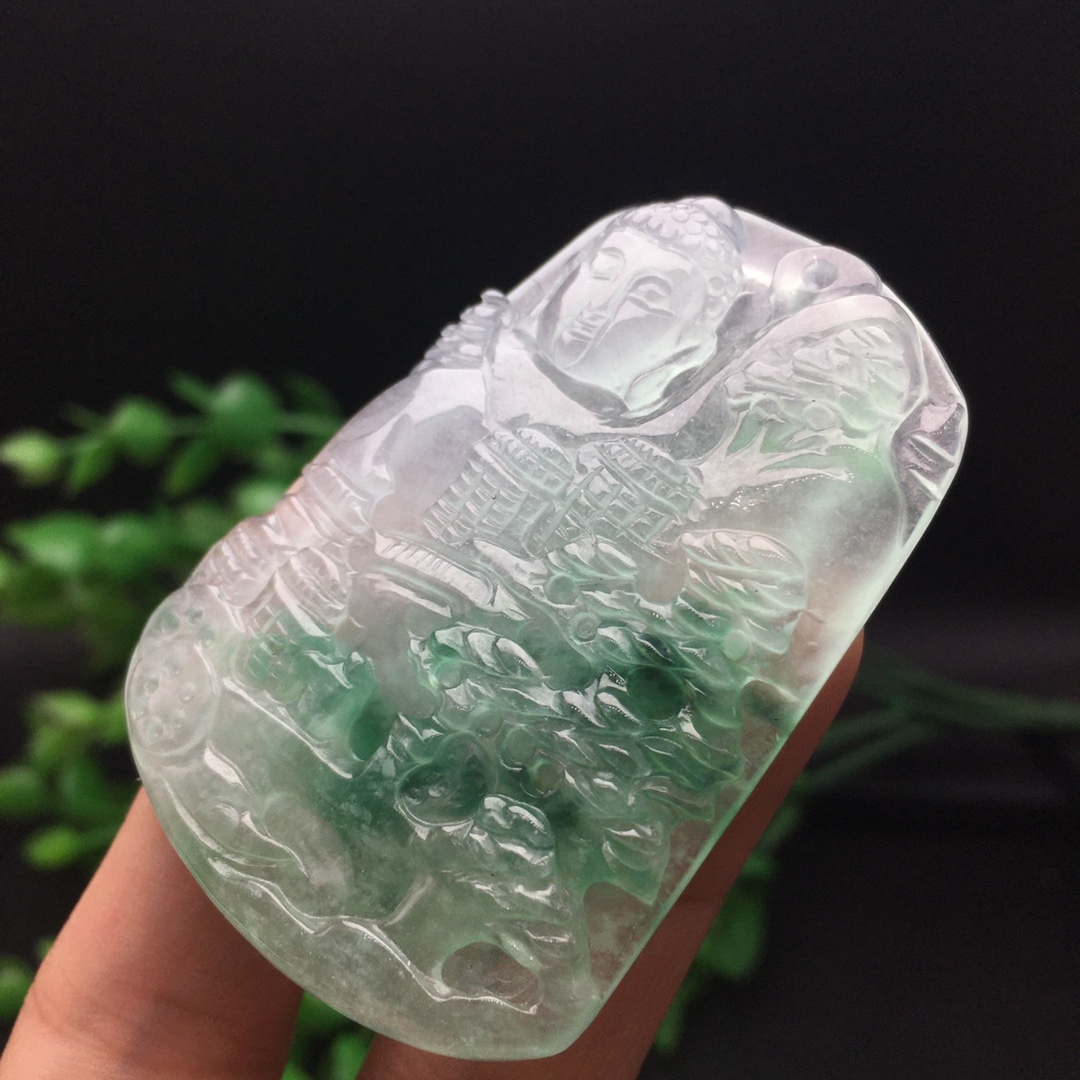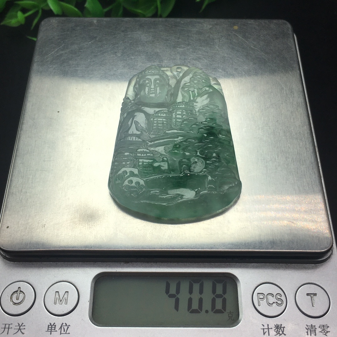 館蔵 翡翠彫 高氷 氷飄 山水観音紋 吊墜 根付 手彫 極細工 中国古美術 古美味 蔵出
