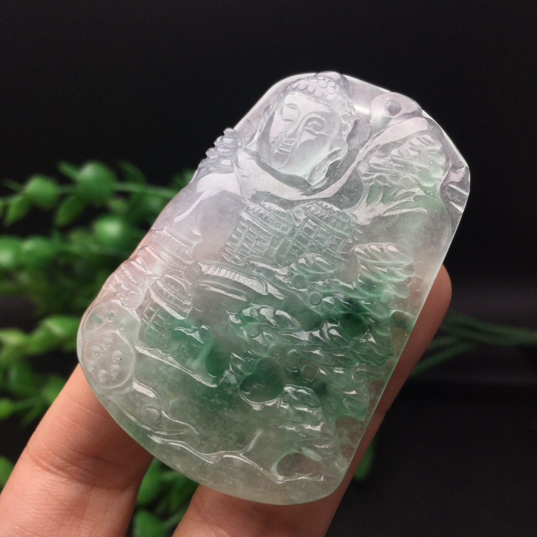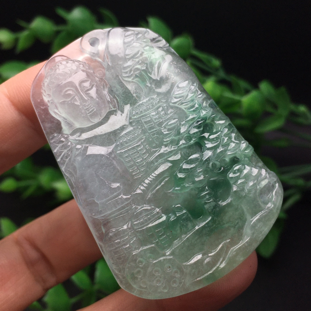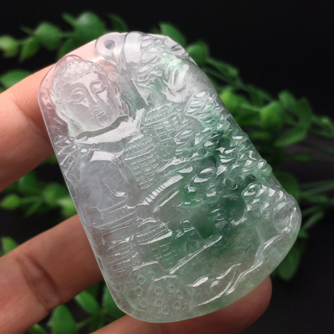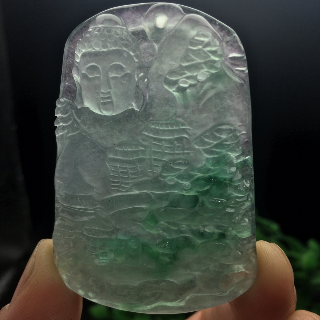 館蔵 翡翠彫 高氷 氷飄 山水観音紋 吊墜 根付 手彫 極細工 中国古美術 古美味 蔵出