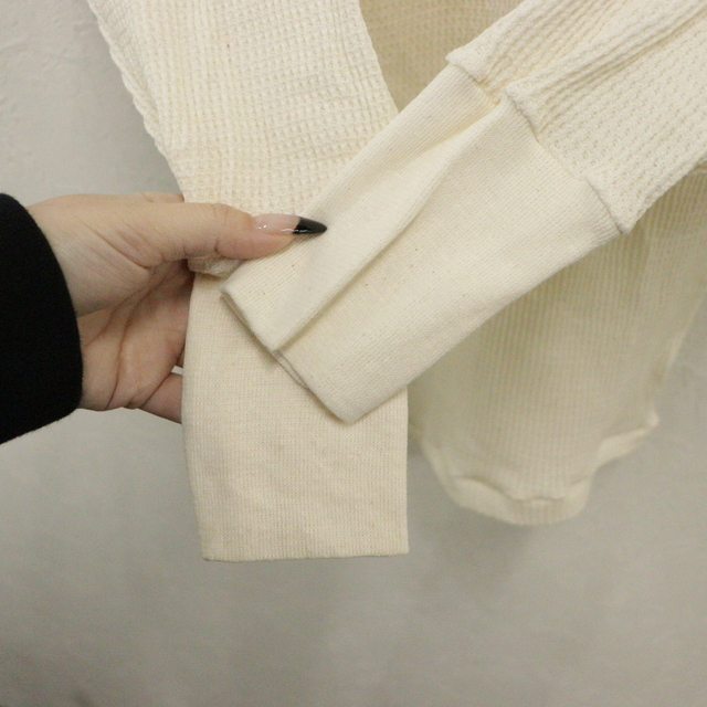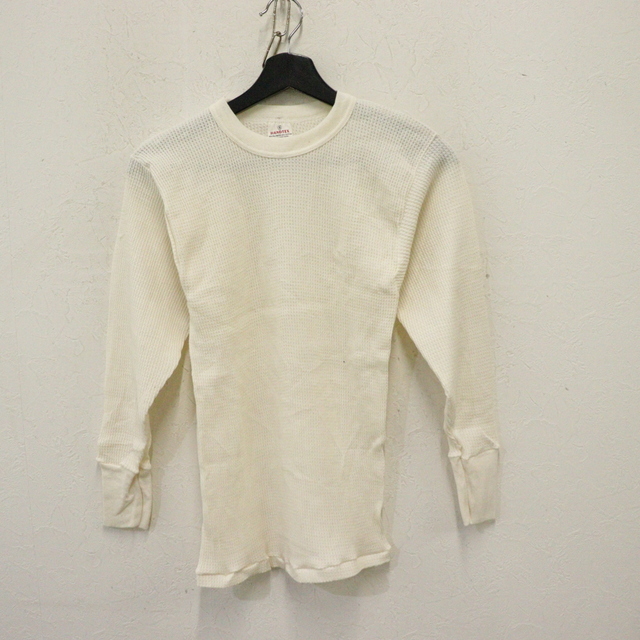 商品名 U191 80sビンテージ HANDTEX 長袖Tシャツ サーマル USA製■1980年代製 表記Sサイズ アイボリー 無地 古着 アメカジ ストリート 90s 激安