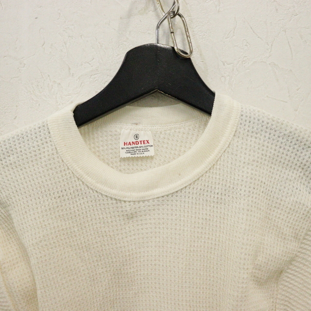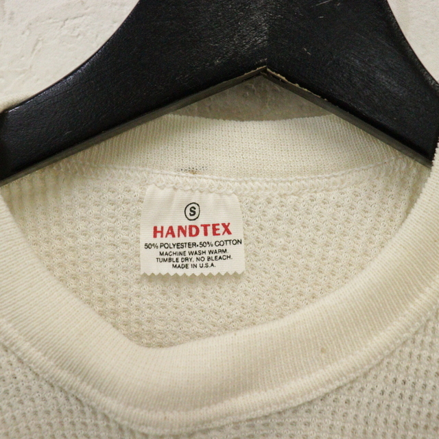 U191 80sビンテージ HANDTEX 長袖Tシャツ サーマル USA製■1980年代製 表記Sサイズ アイボリー 無地 古着 アメカジ ストリート 90s 激安