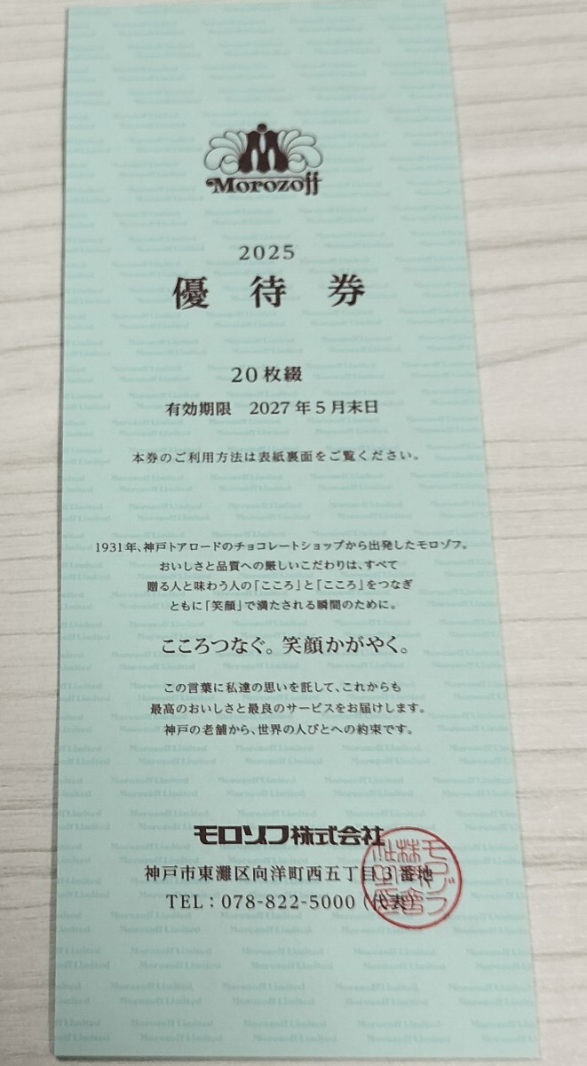 ☆最新☆モロゾフ 株主優待券 20%割引20枚綴 1冊 有効期限2027年5月末日まで