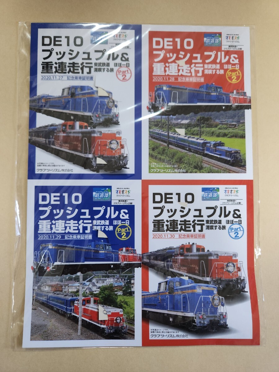 クラブツーリズム 東武鉄道 de10 プッシュプル & 重連走行 記念乗車証明書 令和2年
