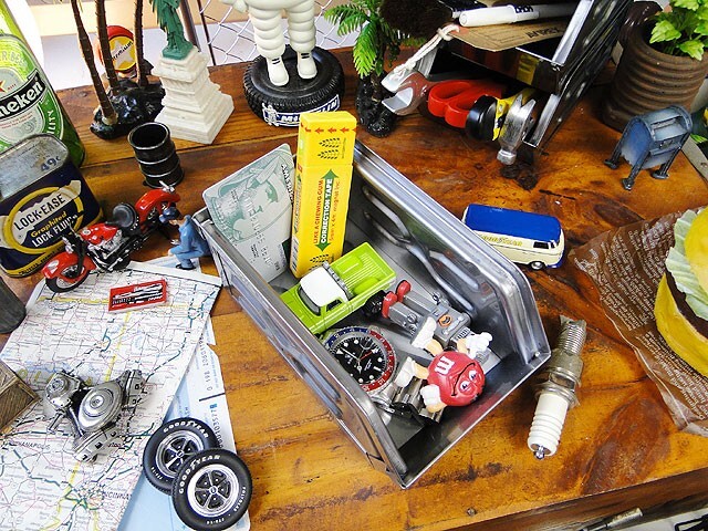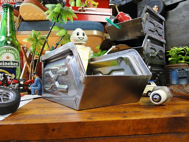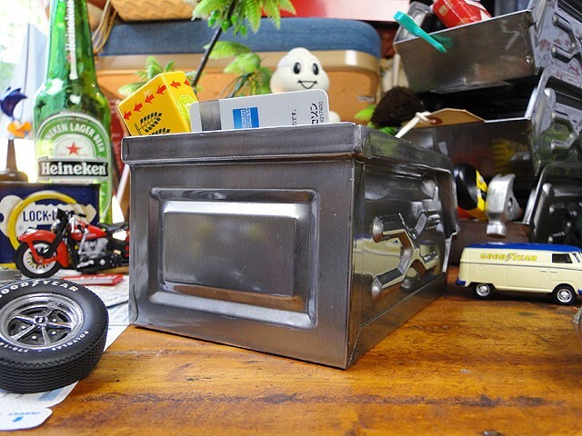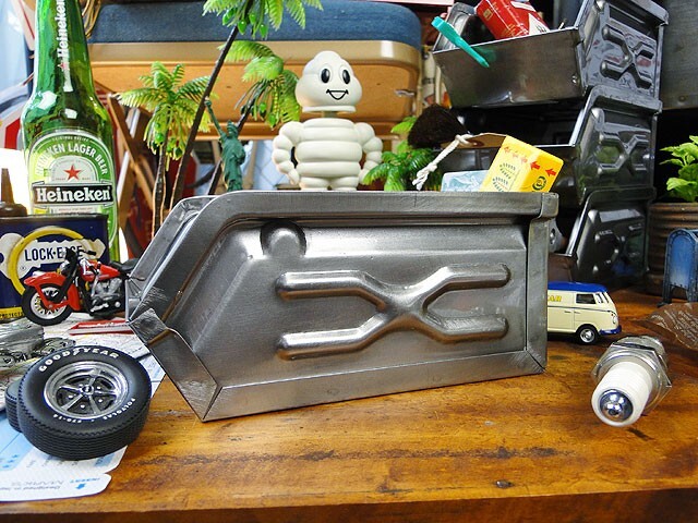 正直、機能面だけみたらプラ製の使い勝手のイイのはいくらでも見つかりますが、ボクらが欲しいのはそんな使い勝手うんぬんじゃなくて、まさにこの見た目の格好良さ!まるで映画に出てくるアメリカ人のワークデスクの上みたいに、無骨で男らしくて、基地っぽい・・・・そんなシーンが欲しいんだからね!
