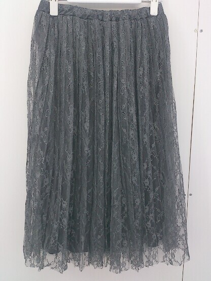 ◇ NATURAL BEAUTY BASIC ウエストゴム レース ロング プリーツ スカート サイズS グレー レディース