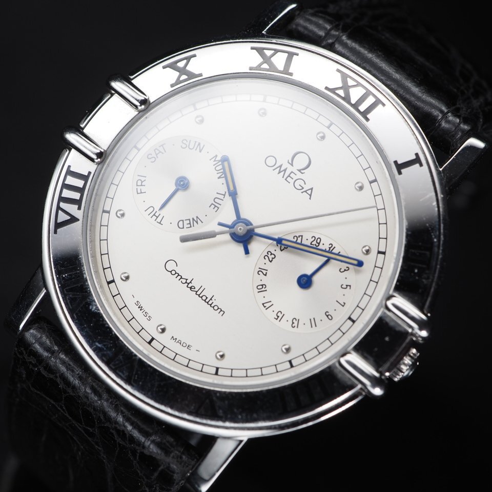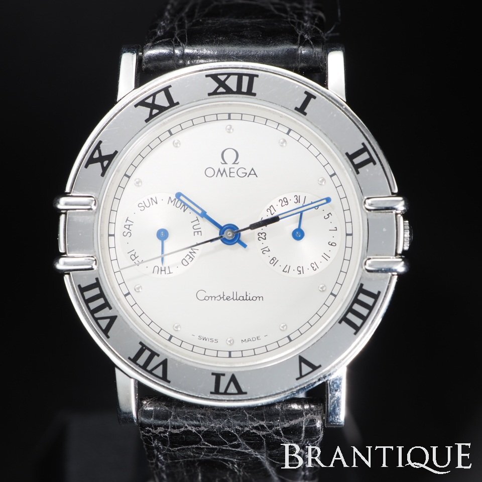 ◆1円~◆希少ラグタイプ◆ OMEGA オメガ コンステレーション デイデイト SS/革 QZ 電池交換済 USED 稼働 メンズ 腕時計 「27560」