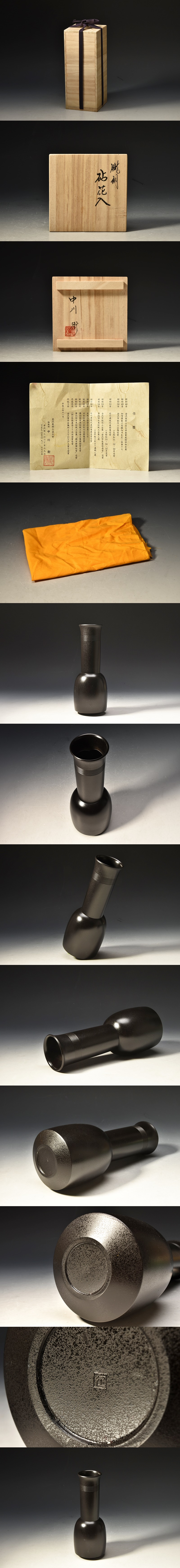 U08014 人間国宝 彫金家 中川衛 朧銅 砧 花入 花器 共箱 金沢 加賀象嵌 /G22
