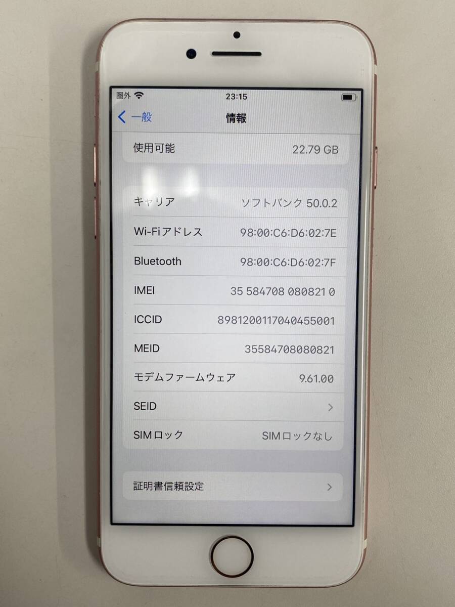 | ▲▽10637 ソフトバンク iPhone7 32GB ピンク MNCJ2J/A バッテリー84%△▼ | ||