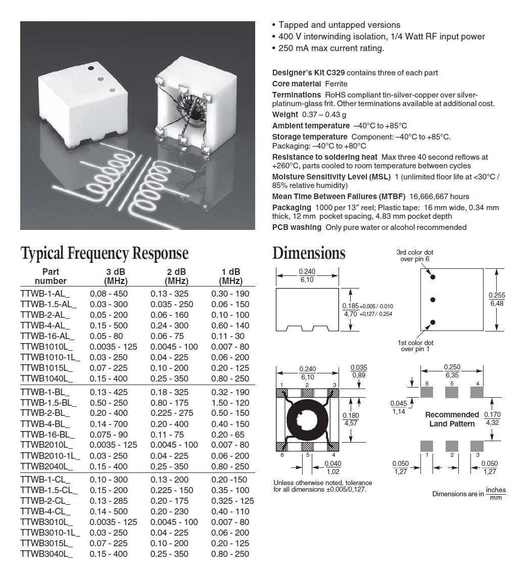 Coilcraft TTWB-4-ALD RFトランス [4個組]【管理:SA971】