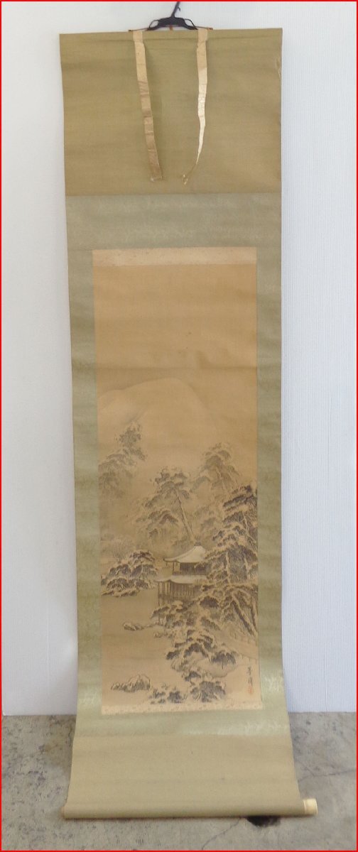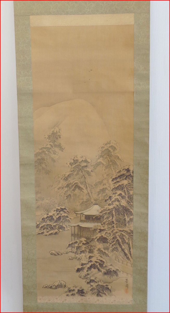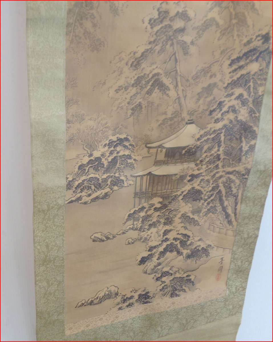 Bana8◆掛軸◆金閣寺雪景図 墨川自題 掛け軸 インテリア コレクション