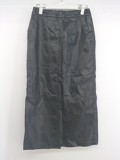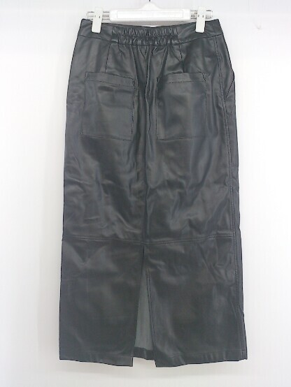◇ LOWRYS FARM フェイクレザー バックスリット ロング タイト スカート サイズ F ブラック レディース E