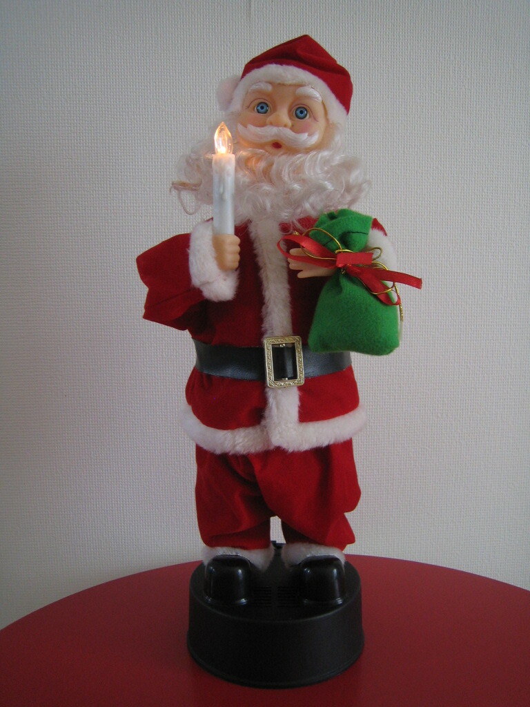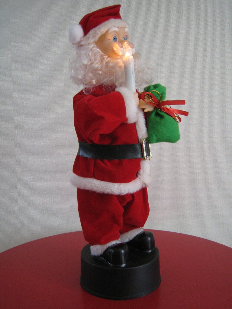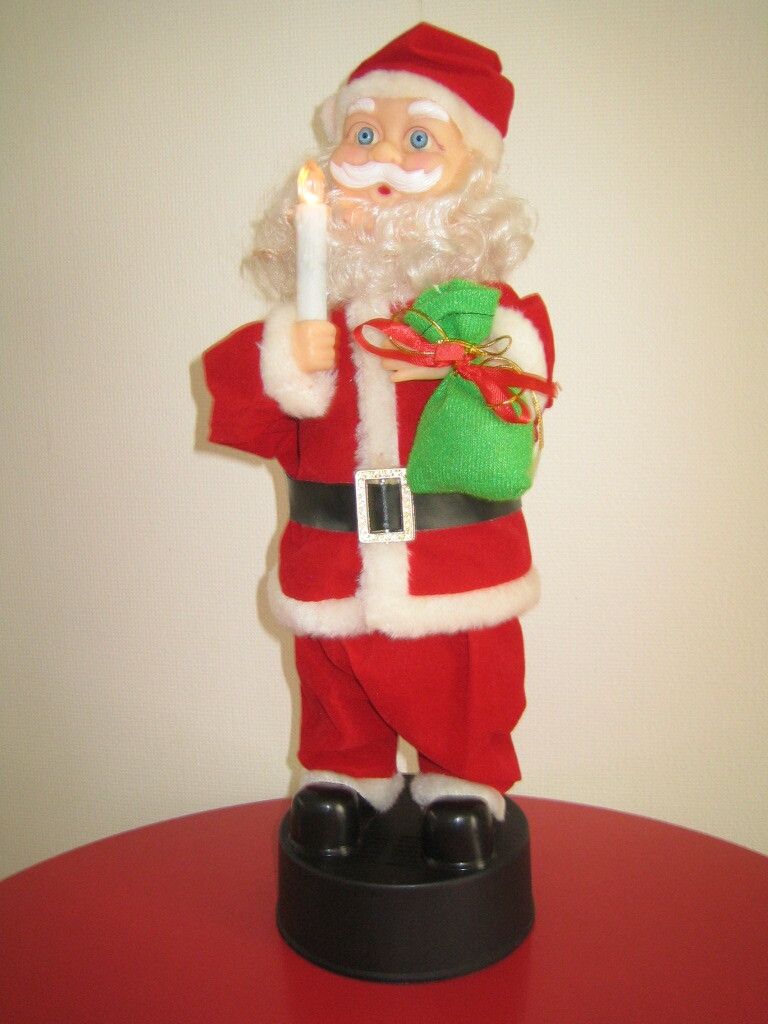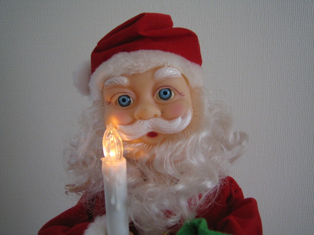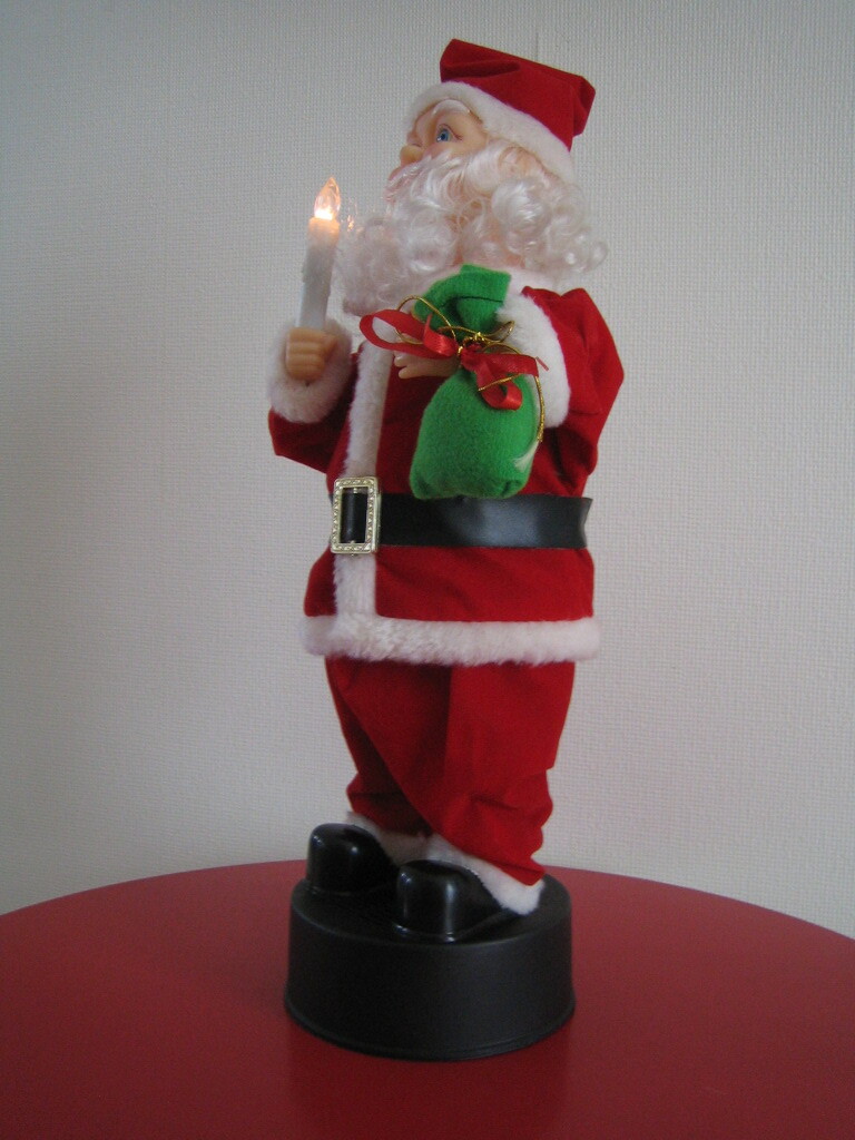 スイッチを「ON」側にすると頭を動かしながら、蝋燭とプレゼントの袋を持った手を広げたり閉じたりします。