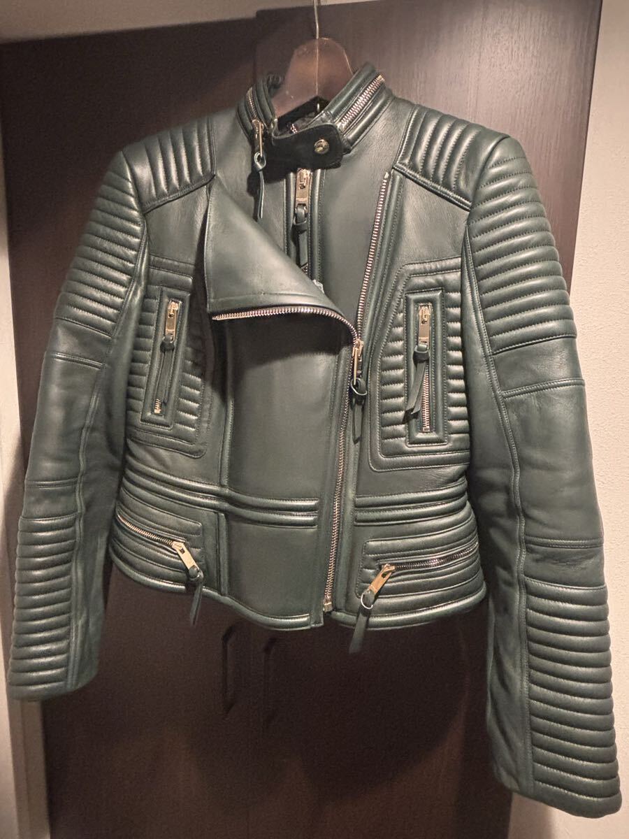 クリストファー・ベイリーがデザインしたこのライダースジャケットは、シングルとダブルのライダースジャケットを融合させたモダンで革新的なデザインで、発売から10年以上経った今でも人気を博しています。