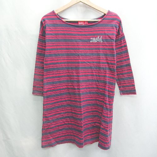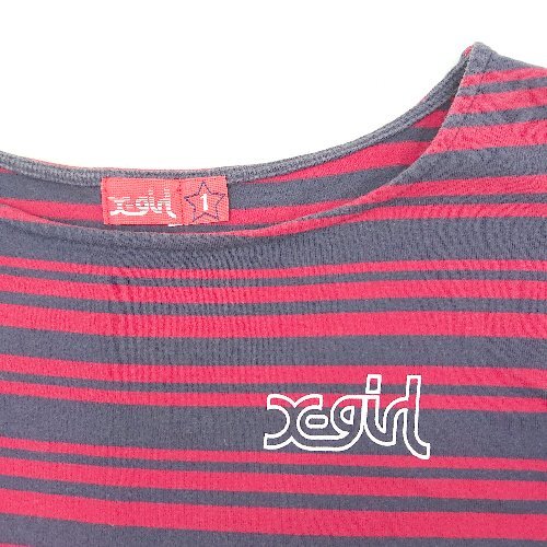 ◇ ⊂ X-girl エックスガール ボーダー柄 長袖 チュニック サイズ1 レッド グレー系 レディース E
