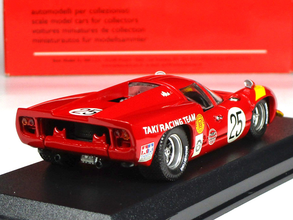 | 商品説明 | ●60年代から70年代にかけて、マクラーレンとともにカンナムで活躍したエリックの名作T70をベルリネッタにして、世界チャンピオンシップに参戦。第5回日本GP、TNTの一角、滝レーシングチームのフラッグシップとして日本でも有名なMkⅢです。 68年に日本グランプリは、トヨタ、ニッサン、タキレーシングが、三つ巴となって大排気量車を投入したグランプリで、えらく盛り上がったものです。 トヨタの主力はセブン。ニッサンは、勝つことのみを目的としたシボレーエンジンを搭載する掟破りのR381。そしてタキレーシングの主力は、2台のローラT70MkⅢクーペと1台のローラT70スパイダー。前回の日本GPで念願の優勝を果たした生沢は、敢えて2リッターの910で挑みます。 レース序盤は、当然R381とローラの戦い。それにピッタリと生沢の910が続きます。 ラップ22で、田中のローラがドライブシャフトを折ったのを皮切りに。 ローラお約束のリタイヤが続き、砂子のR381もロックナットの緩みで大後退。終盤となって、2位とがんばっていたトヨタ7もリタイア。北野のR381が、全車をラップ遅れにする勢いの中、生沢が猛然とスパート。ラッブ72でR381を抜いて同一周回に持ち込むが、再び抜かれて2位、3位にはベテランのR380が入ってゴールとなるのでした。 ベストから、これが出るとは驚きました。25番は、ローラ群の中で22ラップしてリタイヤした長谷見のローラMkⅢです。 |