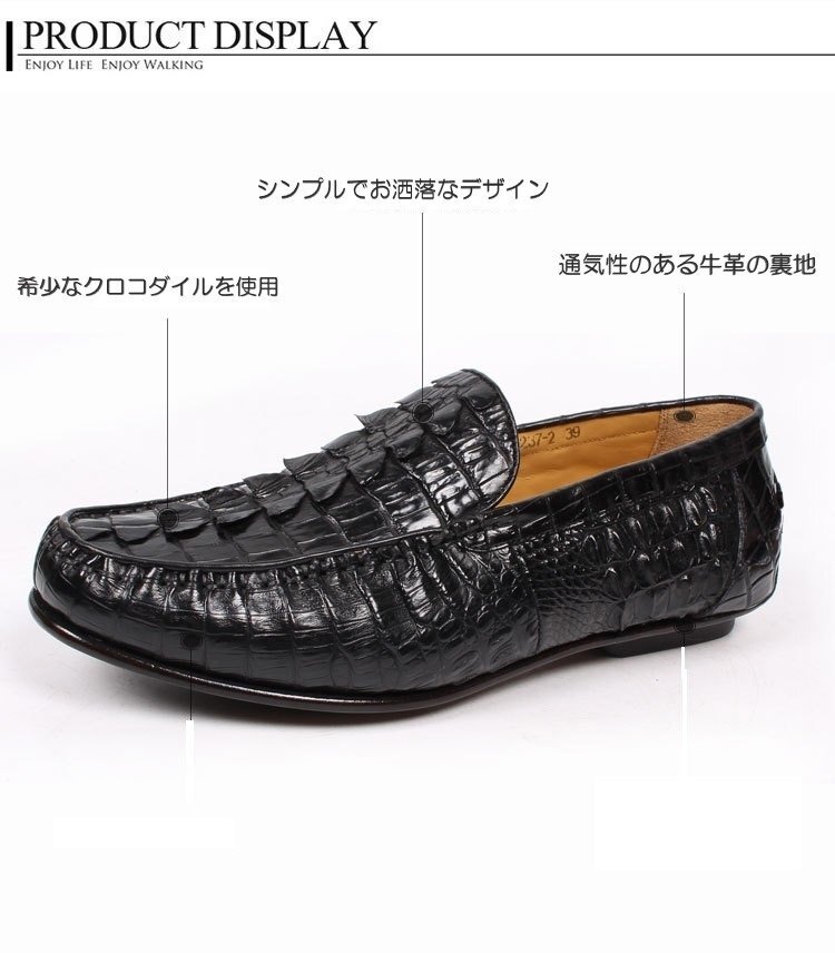 クロコダイルレザー ビジネスシューズ 最高級 ワニ革 クロコダイル 靴 メンズシューズ 革靴 ブラック 24.5cm 【n785】