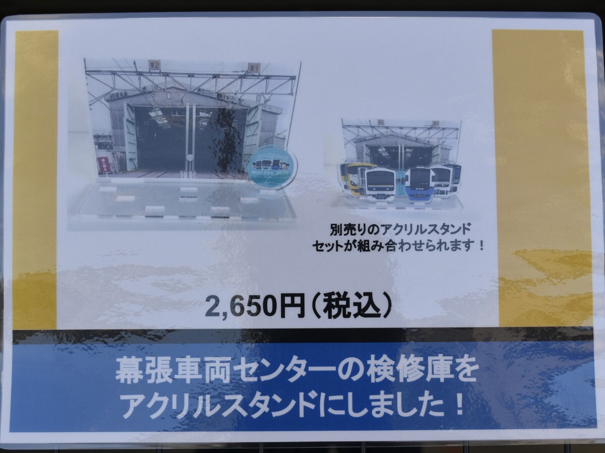 2025年11月22日にJR東日本 幕張車両センターの公開イベント「マリフェス2025」のイベント会場限定で発売された、幕張車両センター検修庫アクリルスタンド(アクリルスタンド車両×2セット付)となります。