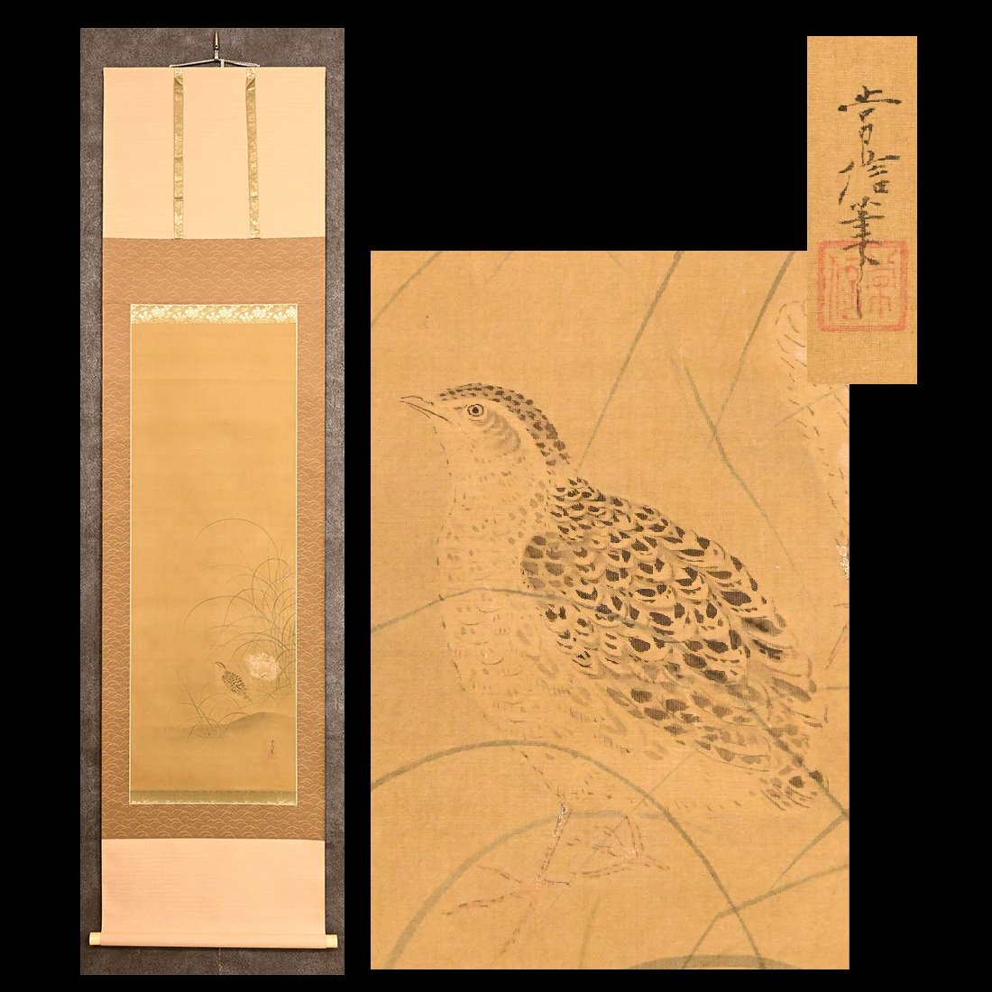 【永】a138【兵庫県の図書館や博物館の館長を歴任された歴史研究家遺族委託品】掛軸 狩野常信 水墨花鳥図鶉画 優品 江戸時代