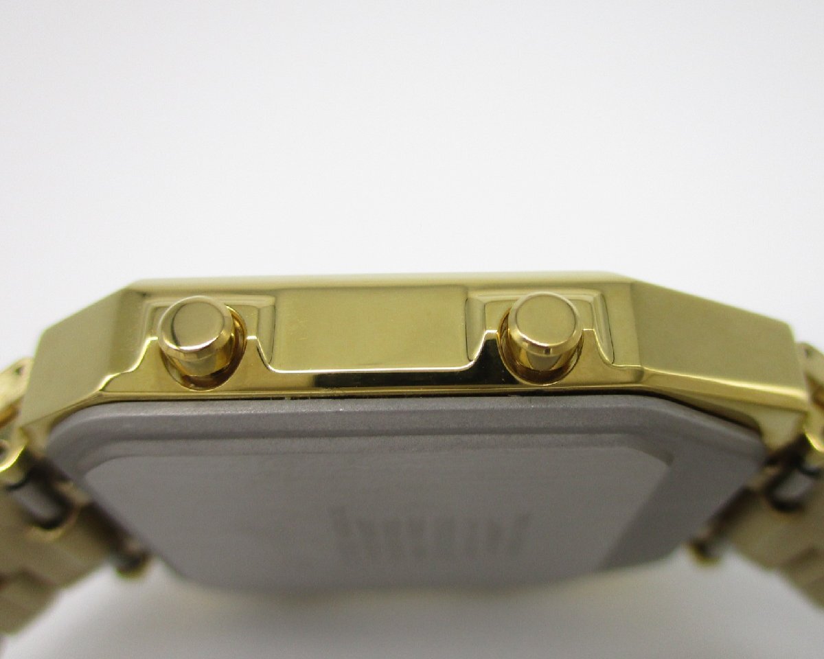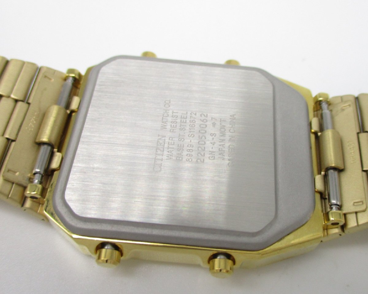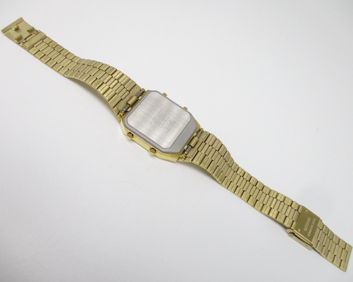 商品詳細 シチズンコレクション RECORD LABEL レコードレーベル ANA-DIGI TEMP ユニセックス・クォーツ・SS・日常生活用防水仕様 仕様・取扱説明書はメーカーHPを御参照なさってください。 【製品番号】JG2103-72X 【型式番号】8989-S116872 【およそのサイズ】ケース幅:31.3㎜ 腕回り:フリーサイズ 【状態】ガラスは無傷です。他部も傷感はとても弱く、極美品レベルだと思います。 クォーツ時計の入っている電池はモニター電池扱いでお願いいたします。発送までに止まった場合は電池交換後、発送いたしますが、 その後の電池切れの際は、落札者様御自身でメーカーもしくは一般店に電池交換にお出しください。 【付属品】箱・保証書等は無く、時計のみです。 |