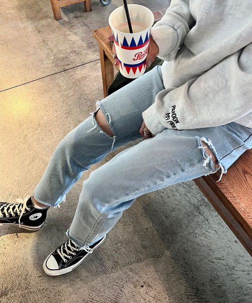 参考商品名:【サイズ展開あり】ダメージテーパードデニム(chiica select) / ダメージデニム クラッシュデニム テーパード ハイウエスト