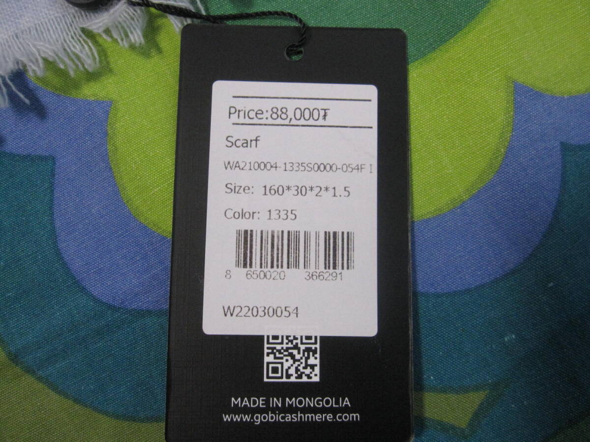 新品/タグ付 GOBI ゴビ カシミヤ100 マフラー 160cm×30cm Color/1335 ホワイト系×ライトブルー系混ざった感じ MONGOLIAN CASHMERE
