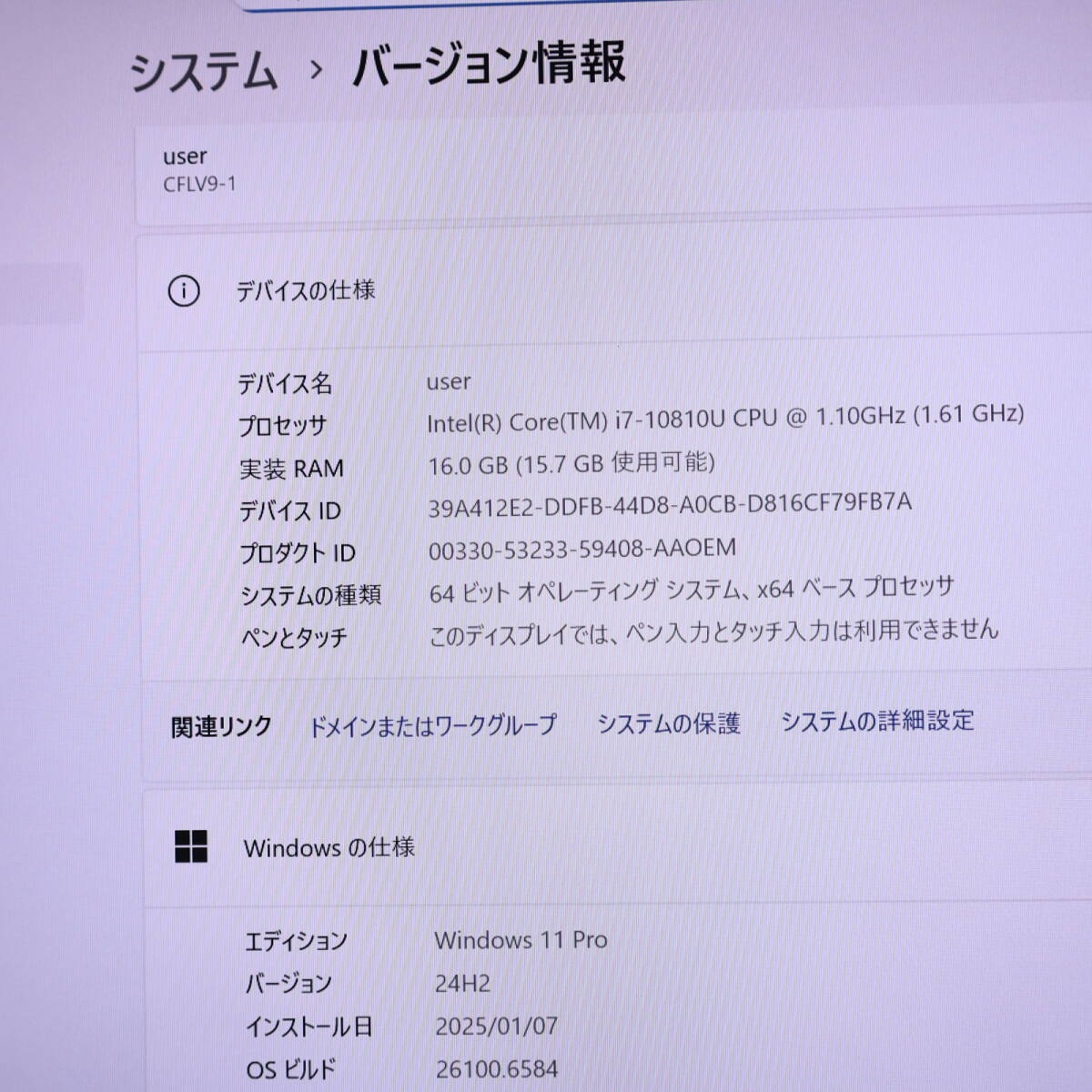 ★現状品 最上級10世代i7!M.2 NVMeSSD512GB メモリ16GB★CF-LV9 Core i7-10810U Webカメラ TypeC LTE Win11 MS Office2019 H&B★P93354