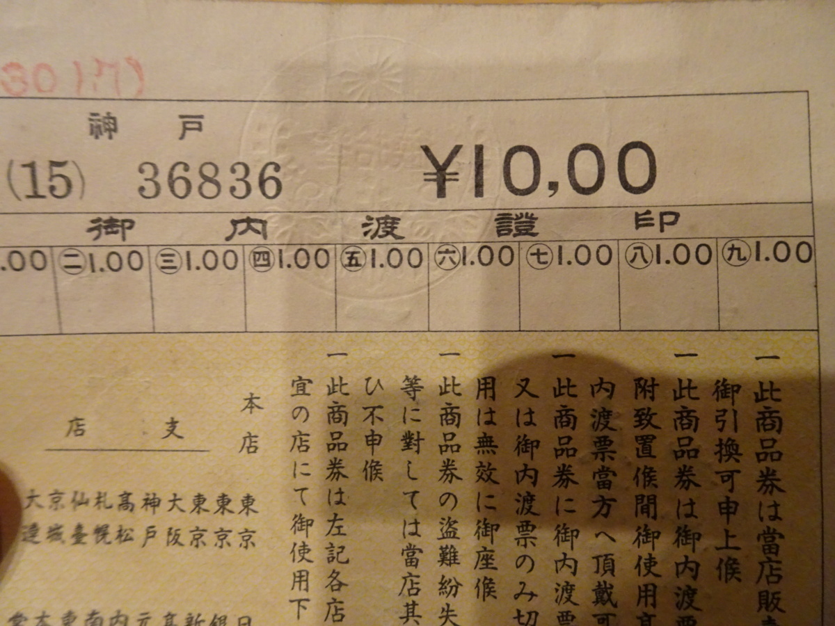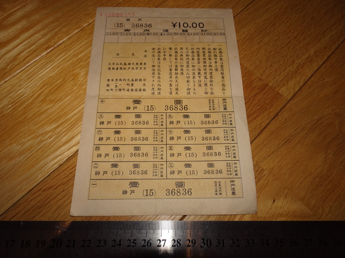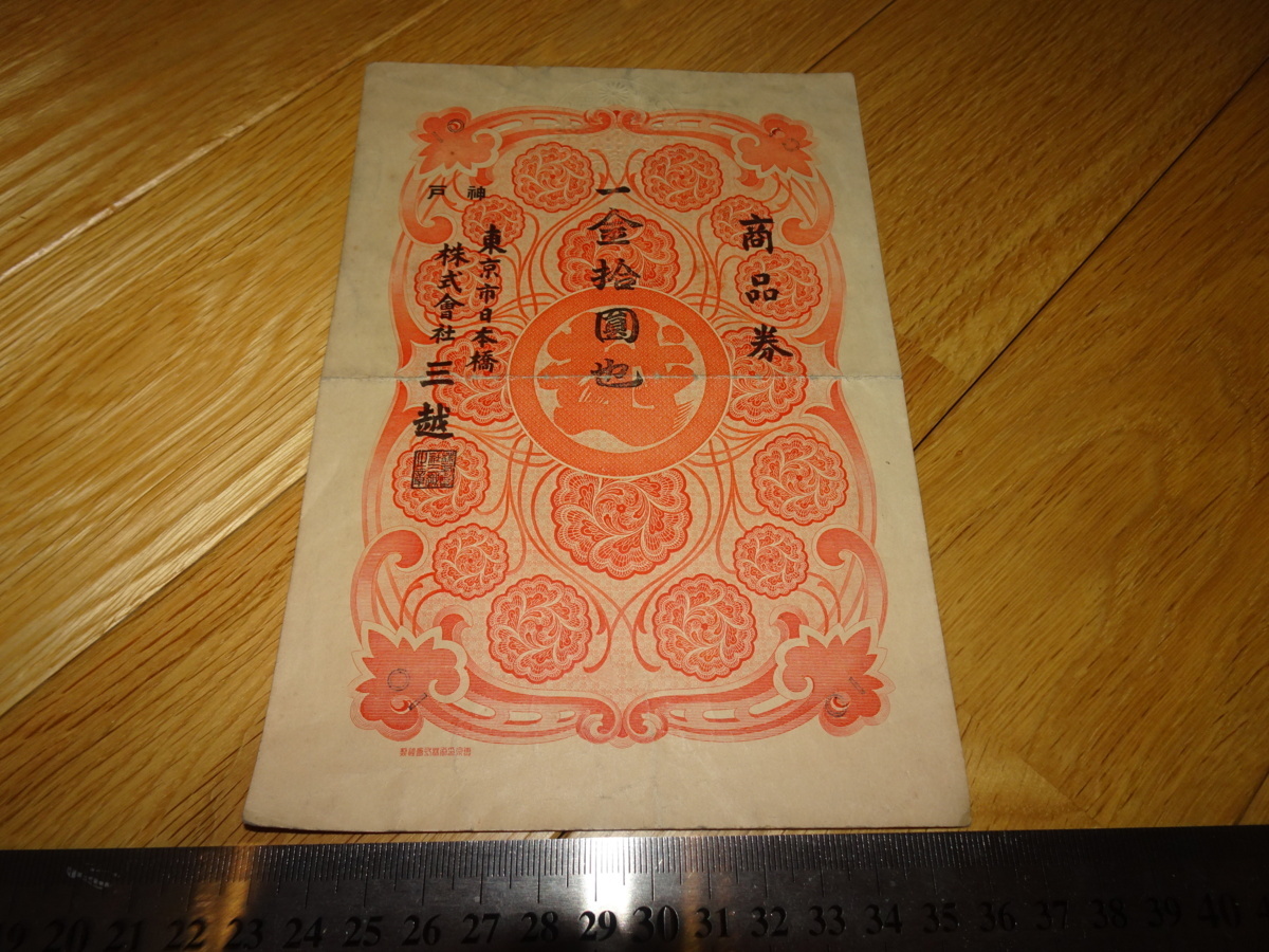 Rarebookkyoto 2F-A80 三越 商品券 神戸 拾圓巻 東京印刷 日本橋 19 年頃 名人 名作 名品