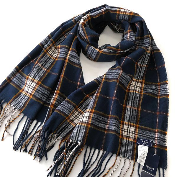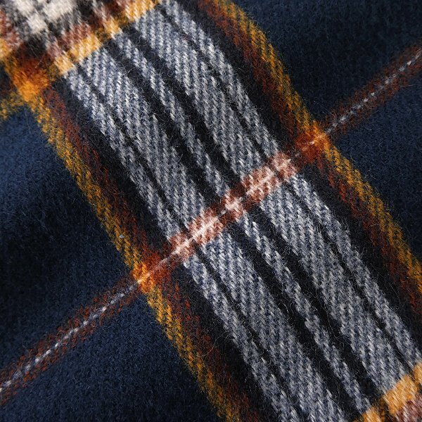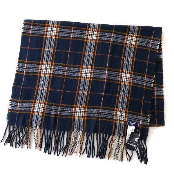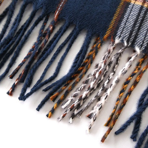 | 新品 未使用 紙タグあり 縦186cm(フリンジ部分含まず) 横62cm アクリル100% ネイビー×ホワイト×ブラウン×イエロー |