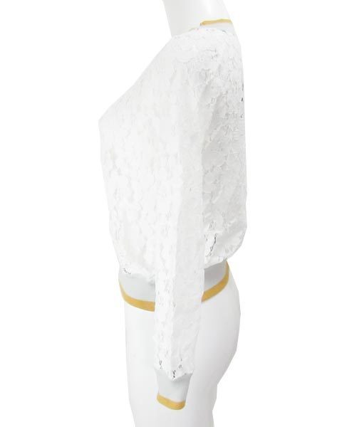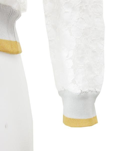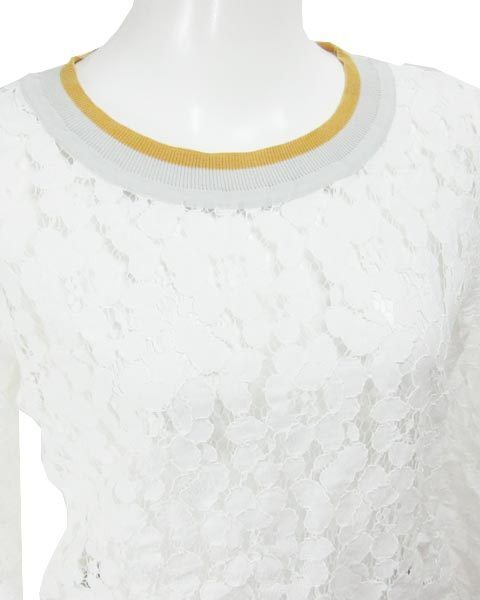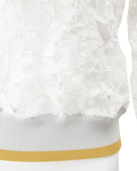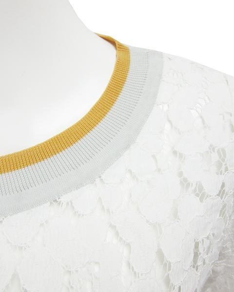 | 身頃と袖部分がレース仕様になっていてカジュアルなリブが首ぐり、袖口、裾についています落ち着いたカラー使いでデニム等のカジュアルアイテムとも相性◎ |