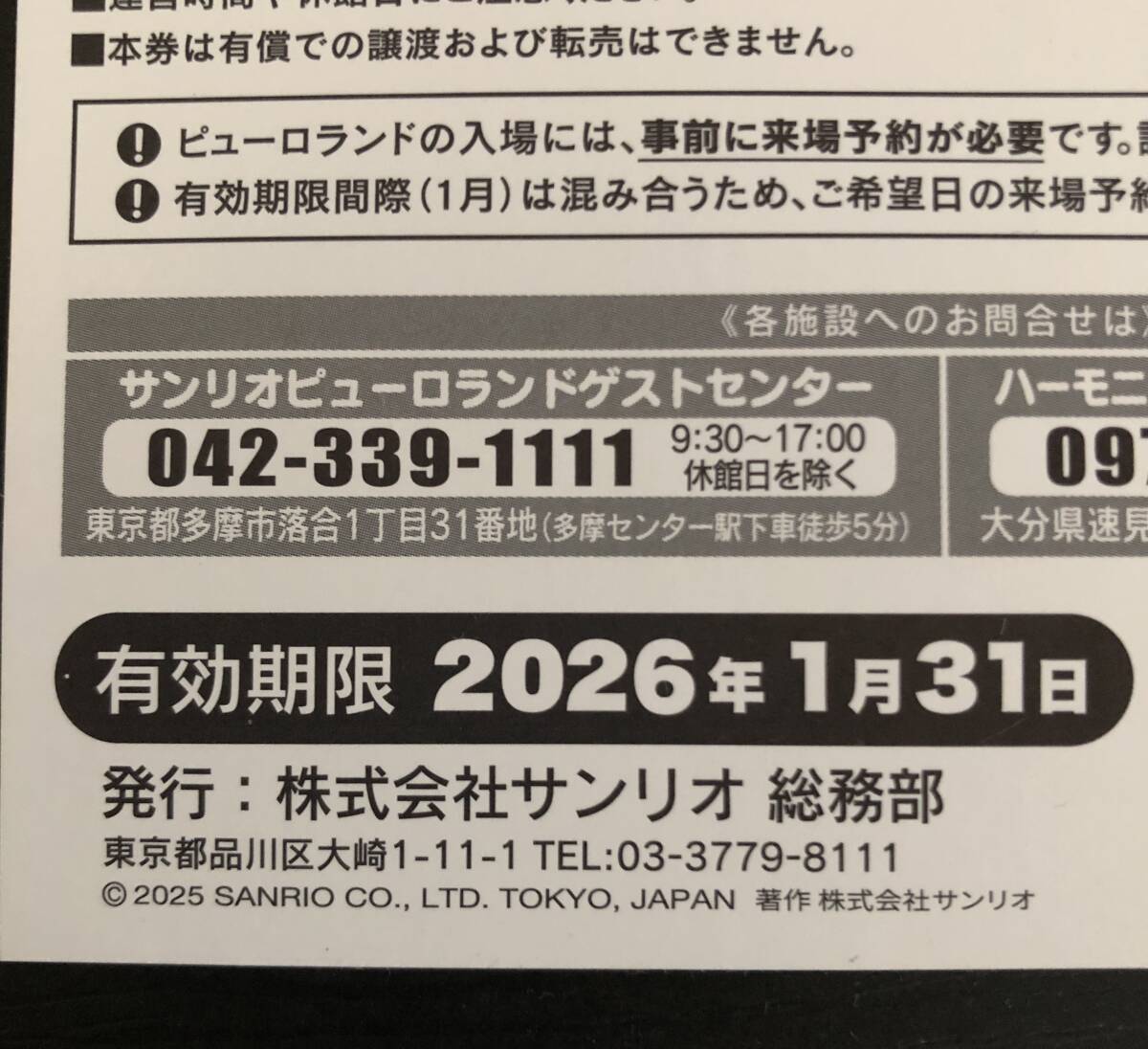 サンリオピューロランド、サンリオハーモニーランドのどちらか1施設に利用できます。