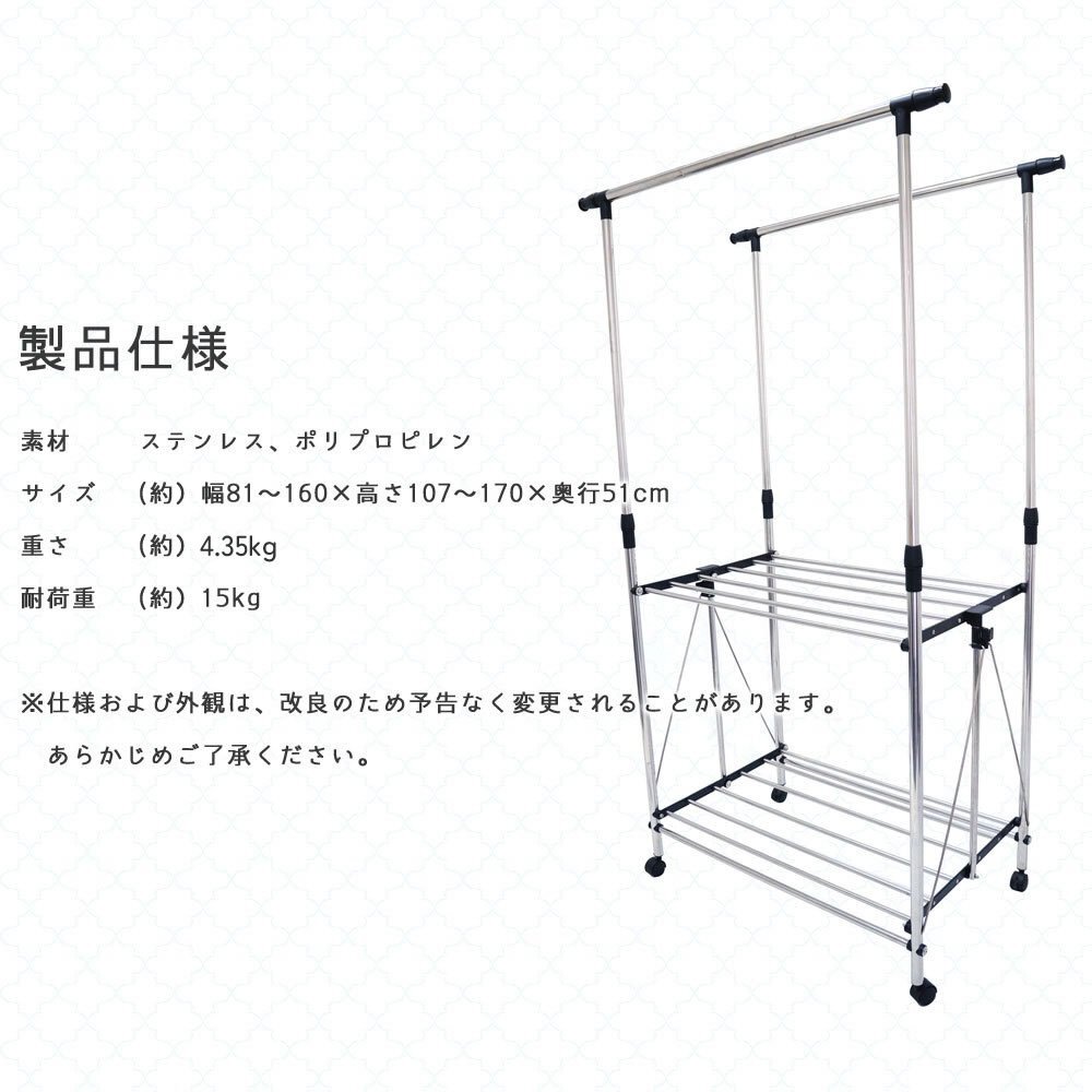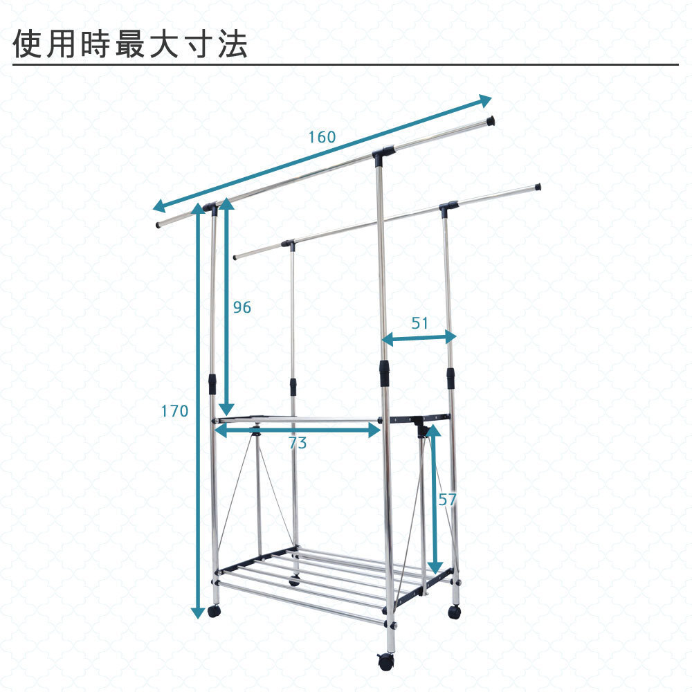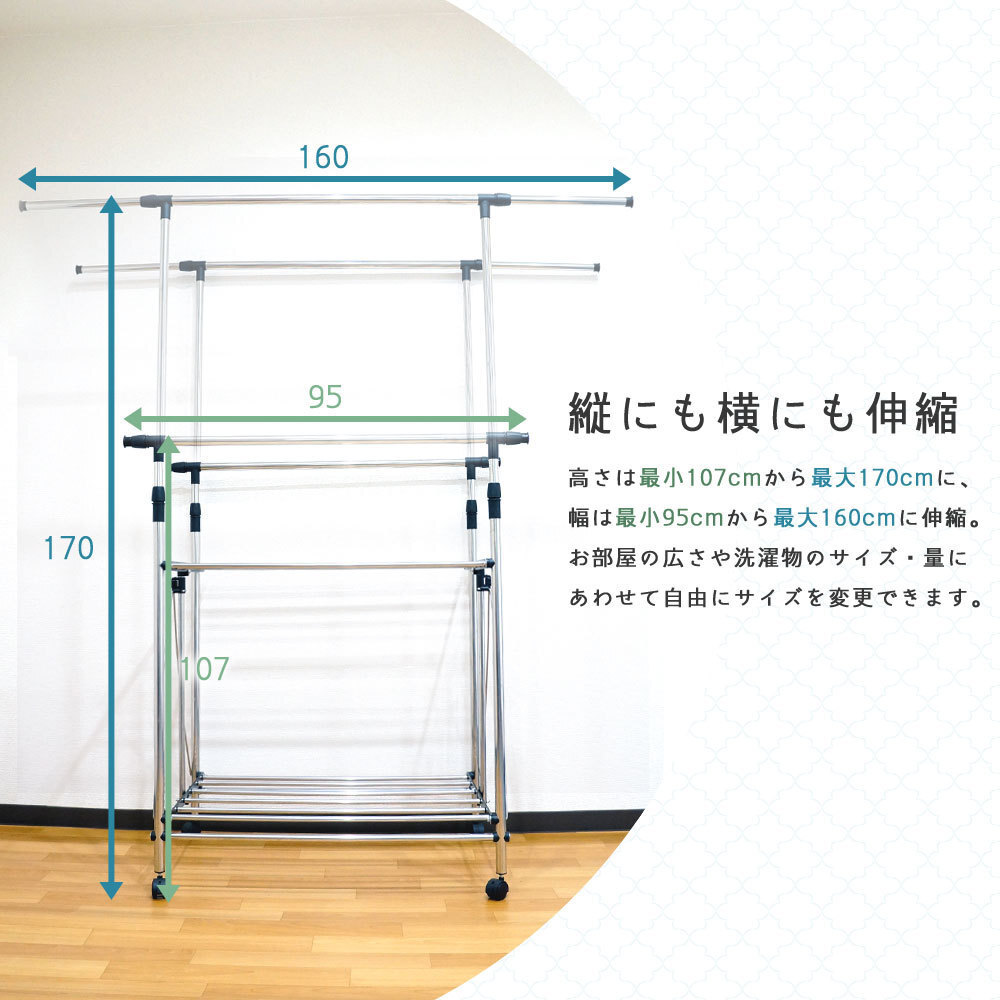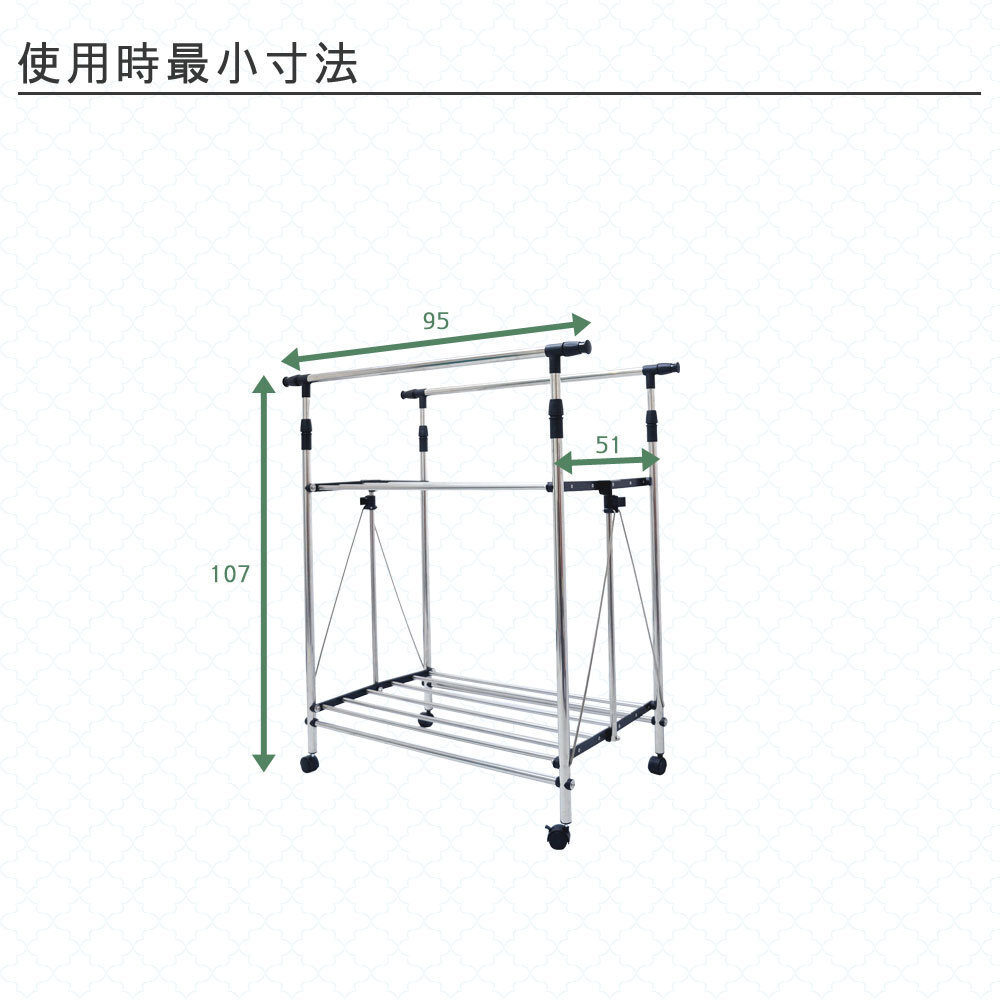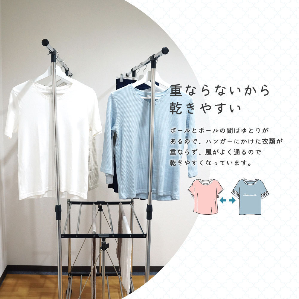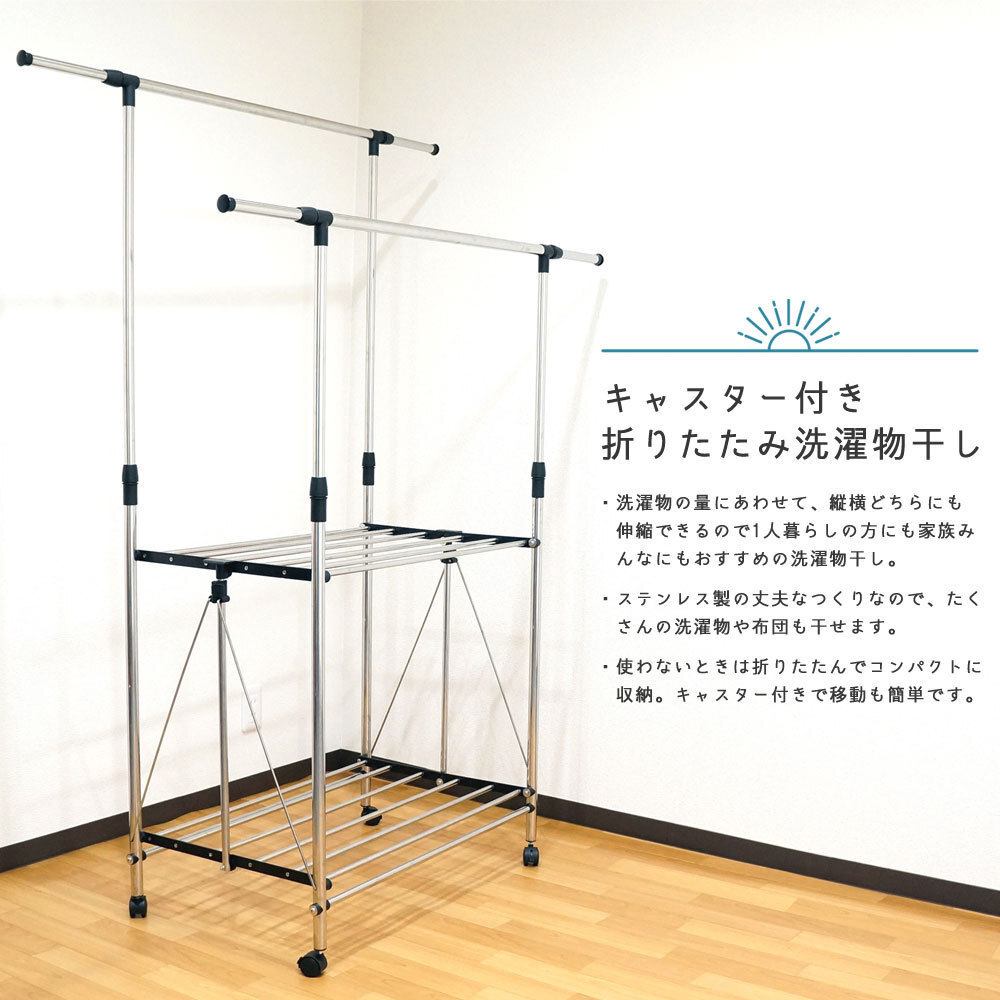 ★折り畳み物干し スタンド キャスター付き ステンレス パイプハンガー コンパクト ポール 室内 部屋干し 室内物干し 伸縮
