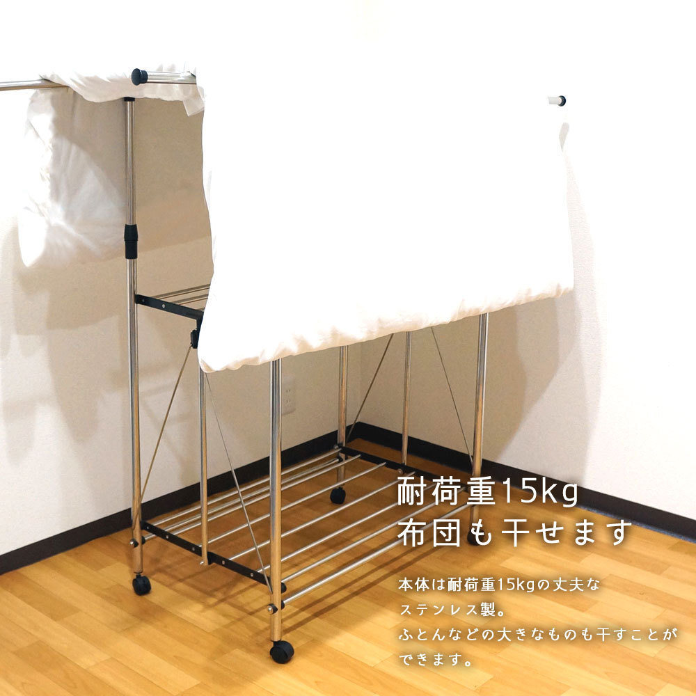 ・ステンレス製の丈夫なつくりなので、たくさんの洗濯物や布団も干せます。