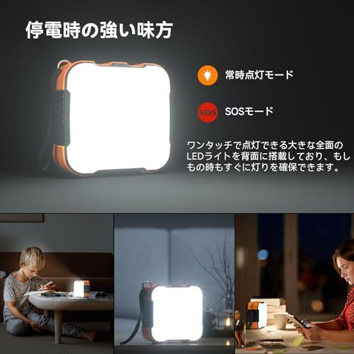 【発光面積の大きな高輝度ライト搭載】Flashfish小型ポータブル電源は便利なLEDライト機能も付きますので、車中泊やキャンプから自然災害や停電時の非常用電源として幅広い活用可能。常時点灯モードとSOS用のフラッシュモードを搭載して照明や救命信号としても利用できます。機器の充電だけでなく、停電時や夜のキャンプの際には、ライトとしても活躍します。幅広いLEDライトなので全体を明るく照らすことができます。