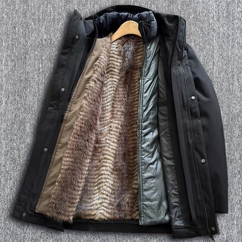 極暖頂上 国内未販売 新品 上質 フェイクミンクファー 中綿ジャケット 防寒 防風 ミディアム丈 メンズ 冬服 裏ボアで 厚手 コート 黒