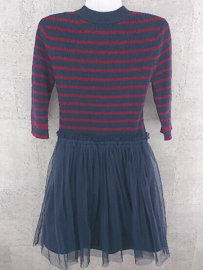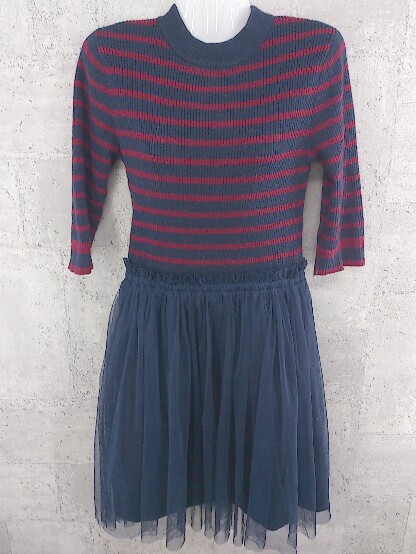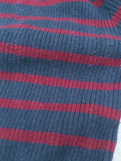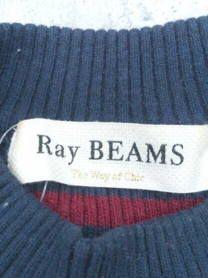 ◇ Ray BEAMS レイ ビームス 切替 ボーダー ハイネック 長袖 膝丈 ワンピース ネイビー レディース