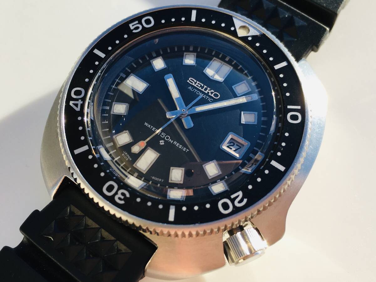 セイコーダイバーのセカンドモデルのRef.6105は1968年から1976年まで製造されました。セカンドダイバーは前期・中期・後期の3タイプがあります。大別すると1969年までの前期型「6305-8000」と1970年以降の中後期型「6105-8110」の2つに分類ができます。特に中後期型のモデルは「植村直己モデル」と呼ばれています。氷点下での利用など過酷な環境下で使用されてきた頑丈なダイバーズウォッチです。植村直己モデル 日本人として初めてエベレスト登頂に成功し、世界初の5大陸最高峰登頂成功者として世界的に有名な冒険家 植村直己の助言によって完成した150mダイバー。1974年12月29日から1976年5月8日に北極圏12000km犬ゾリ単独行   に使用されたことです。として人気の高い150mダイバーの第二世代。