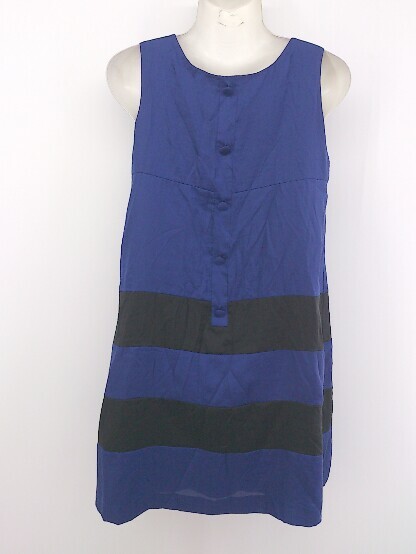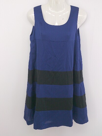 ◇ emit of energy Ray BEAMS サテン調 ノースリーブ 膝丈 ワンピース サイズ0 ネイビー ブラック レディース P