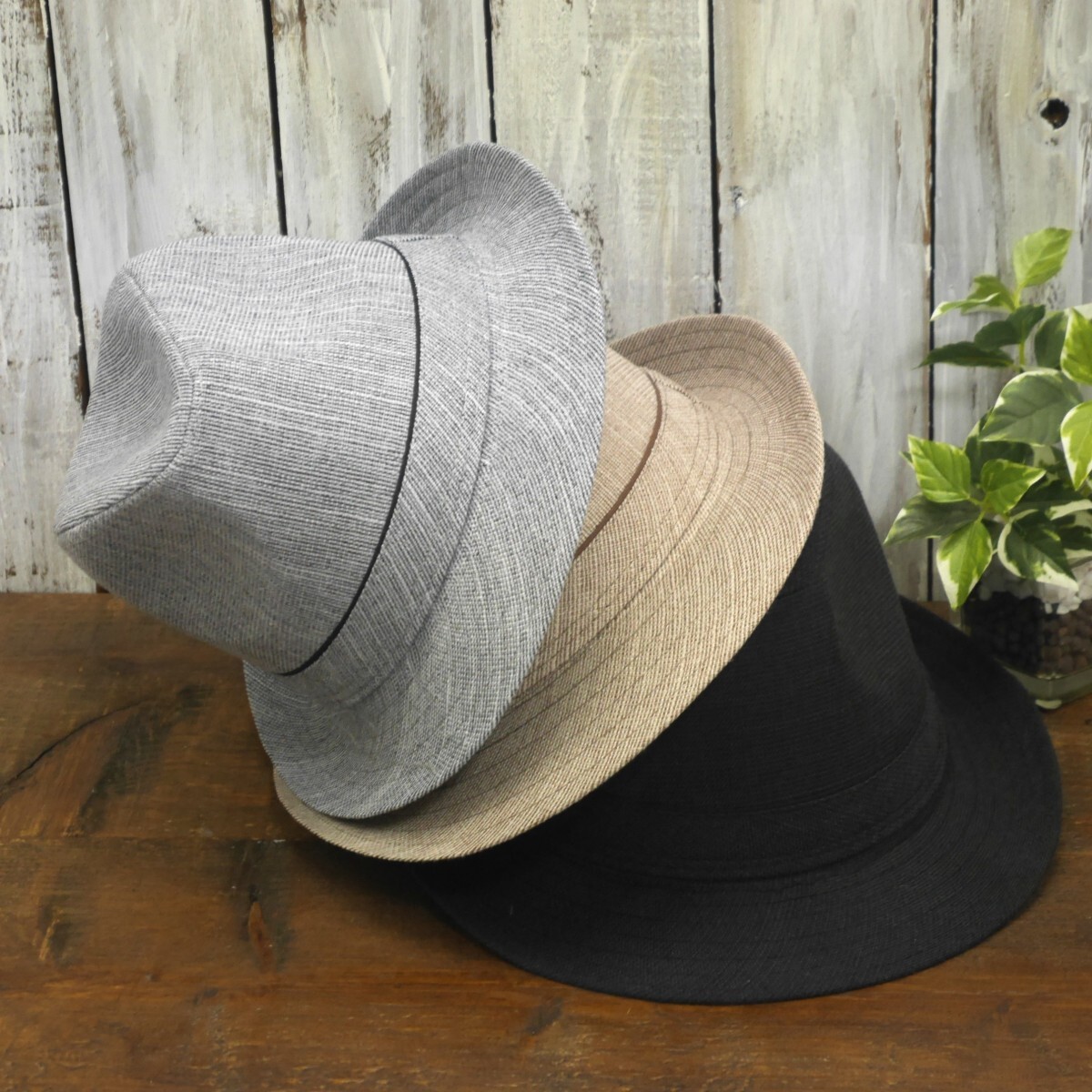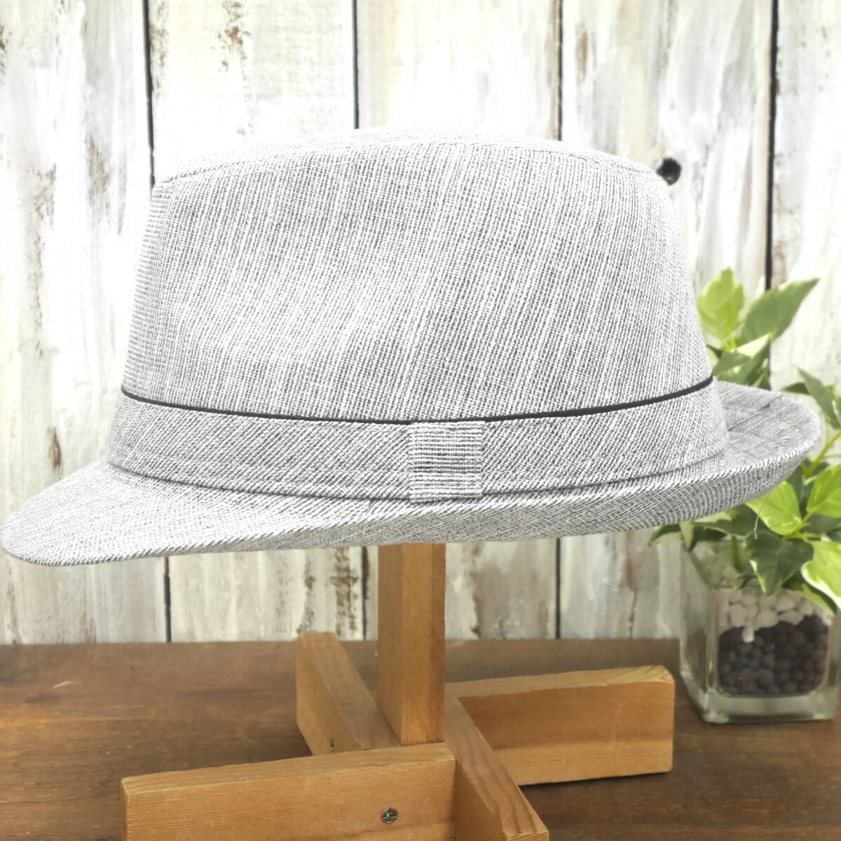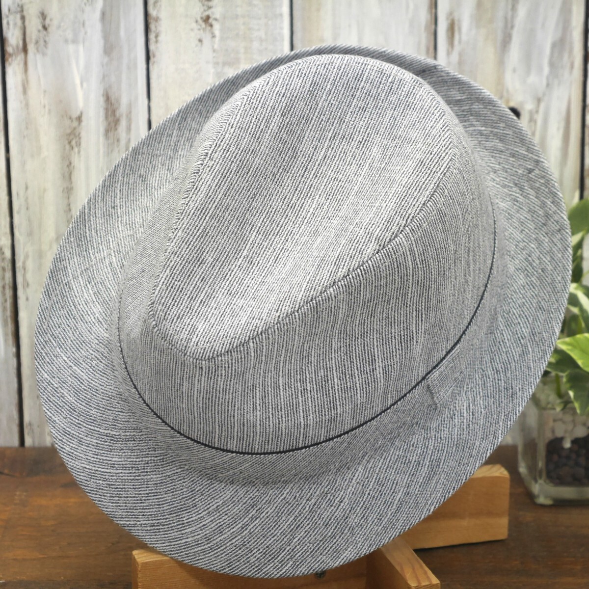 大きなサイズ Lサイズ サイズ調整 フェドラハット ストライプ グレー シンプル 男女OK 送料\450 中折れハット パナマ ボルサリーノ