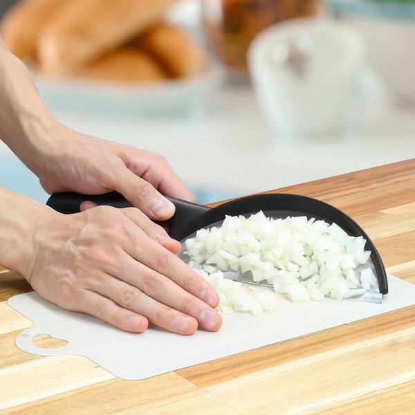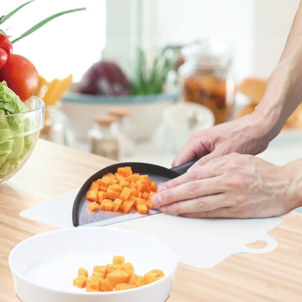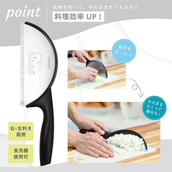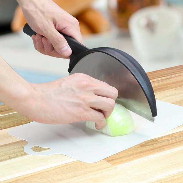 みじん切りなどの食材がこぼれにくく、一気にすくえて、まな板周りもキレイに!