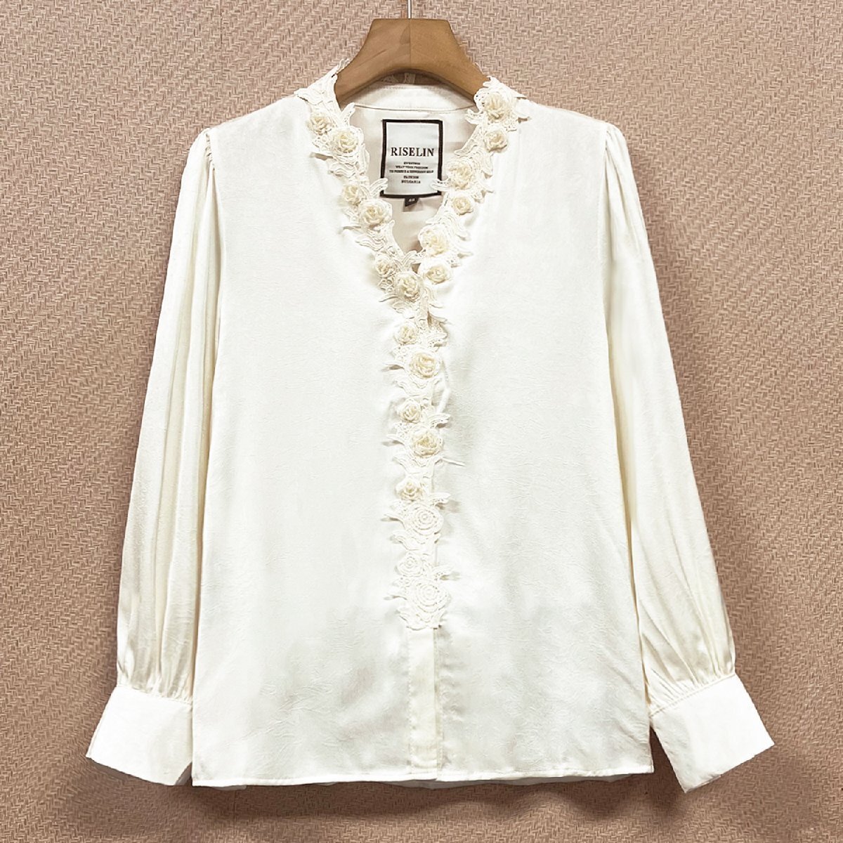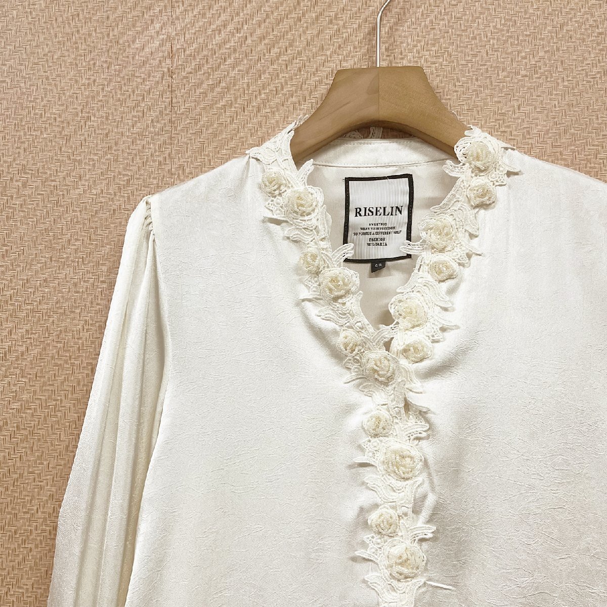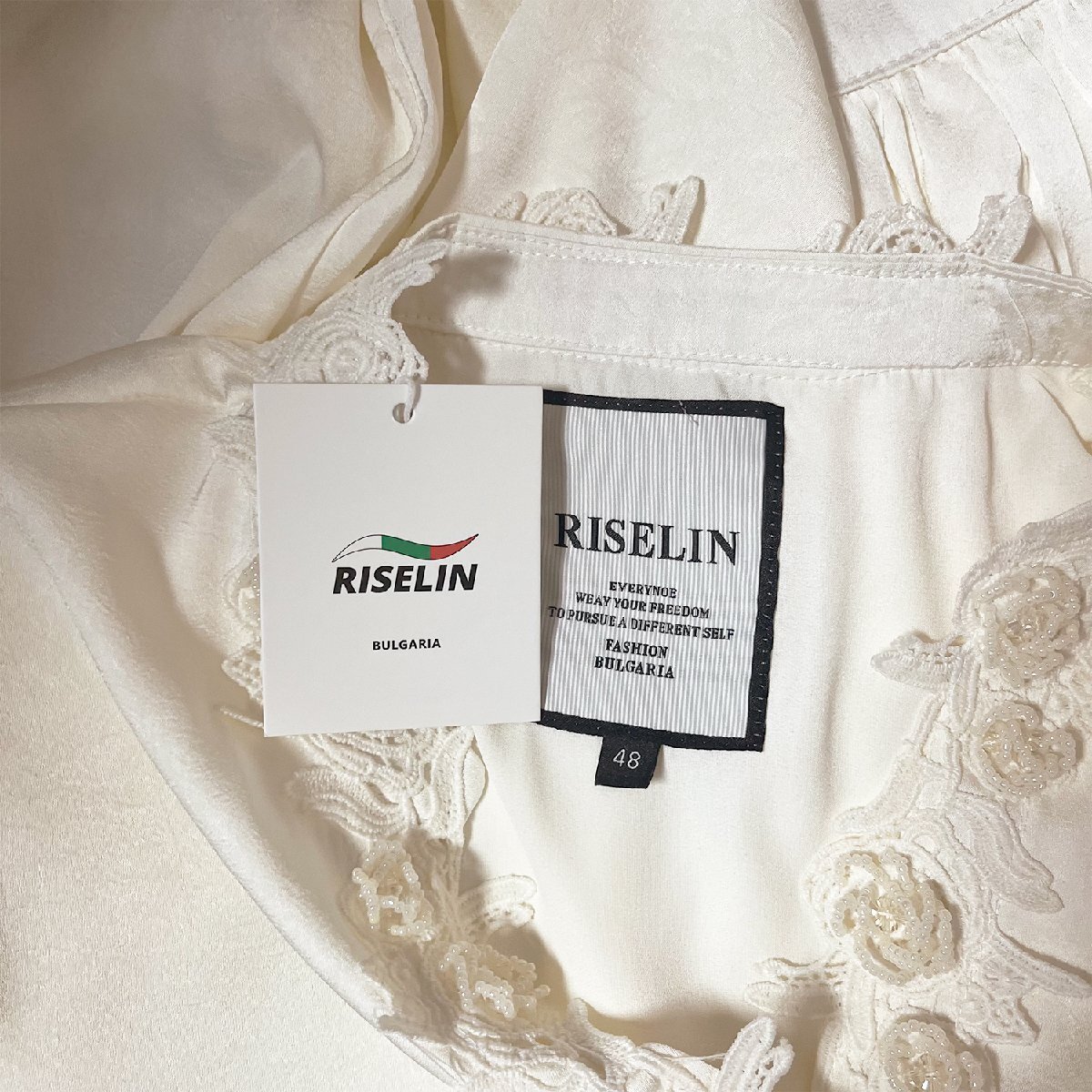 絶賛ヨーロッパ製※定価4万◆ブルガリア発※RISELIN 長袖シャツ シルク混 快適 涼しい 花柄 ビーズ きれいめ ブラウス OL 通勤 フォーマル M/46サイズ