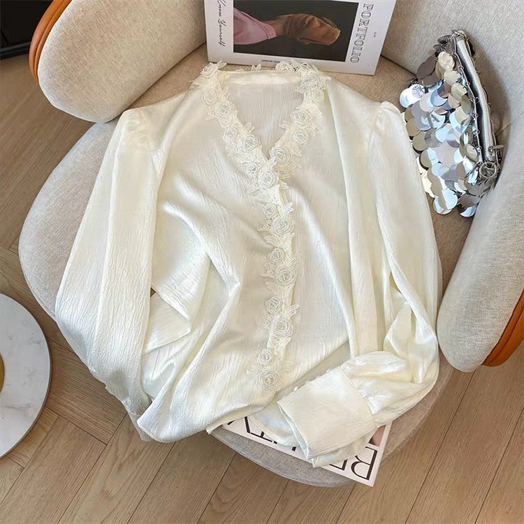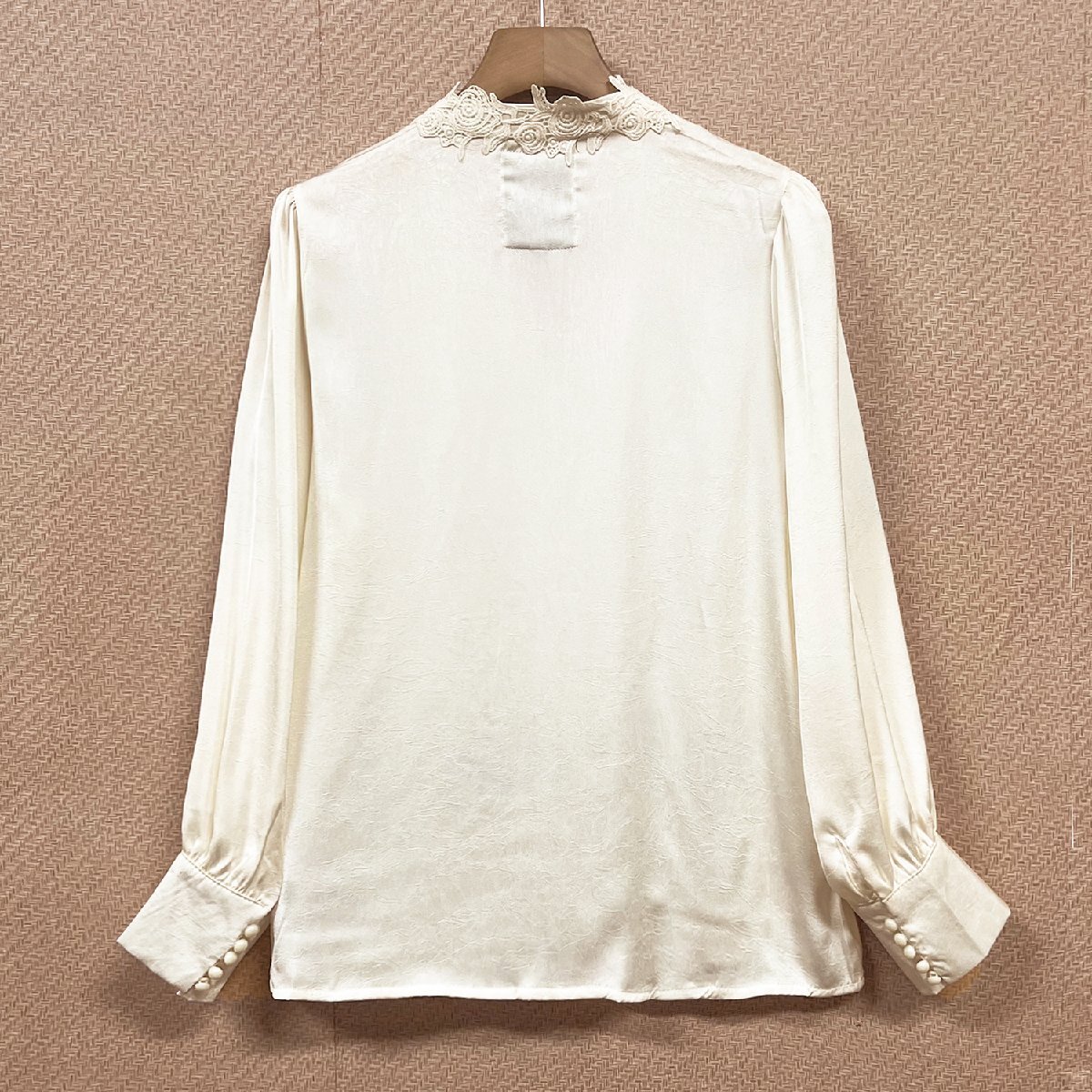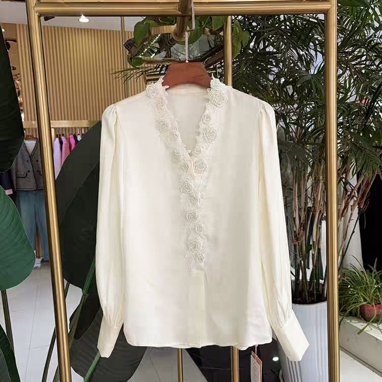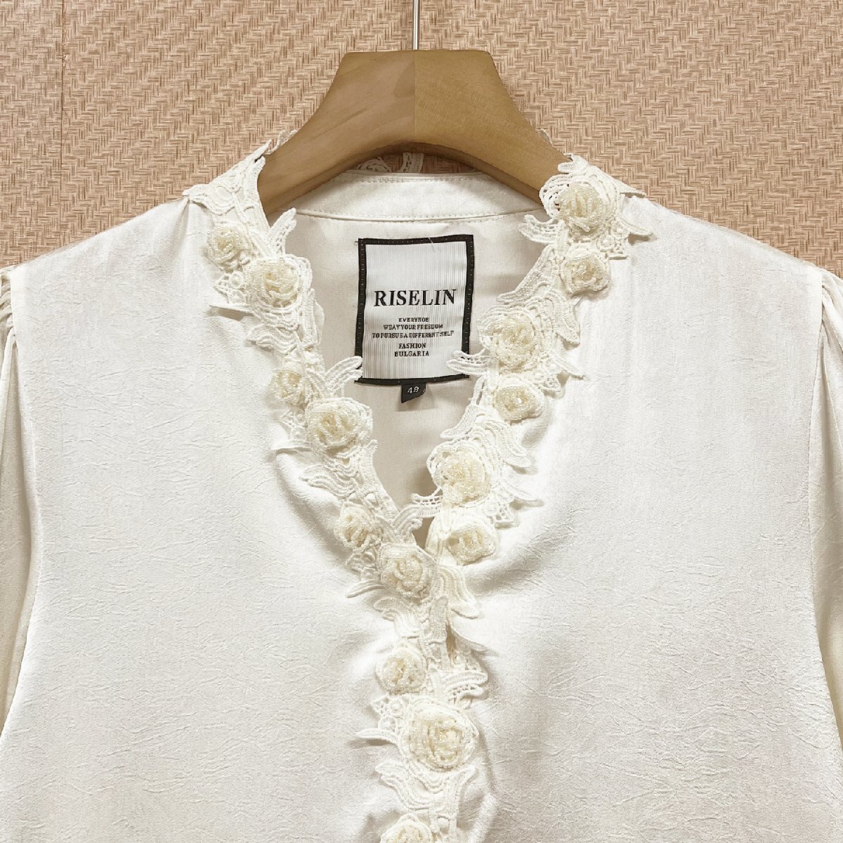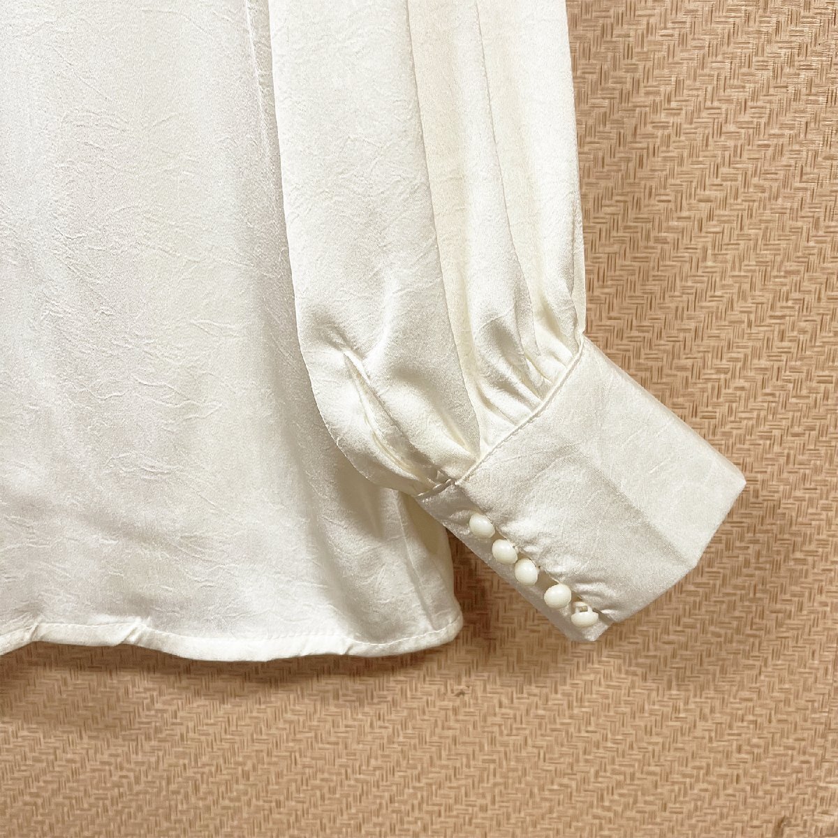 絶賛ヨーロッパ製※定価4万◆ブルガリア発※RISELIN 長袖シャツ シルク混 快適 涼しい 花柄 ビーズ きれいめ ブラウス OL 通勤 フォーマル M/46サイズ