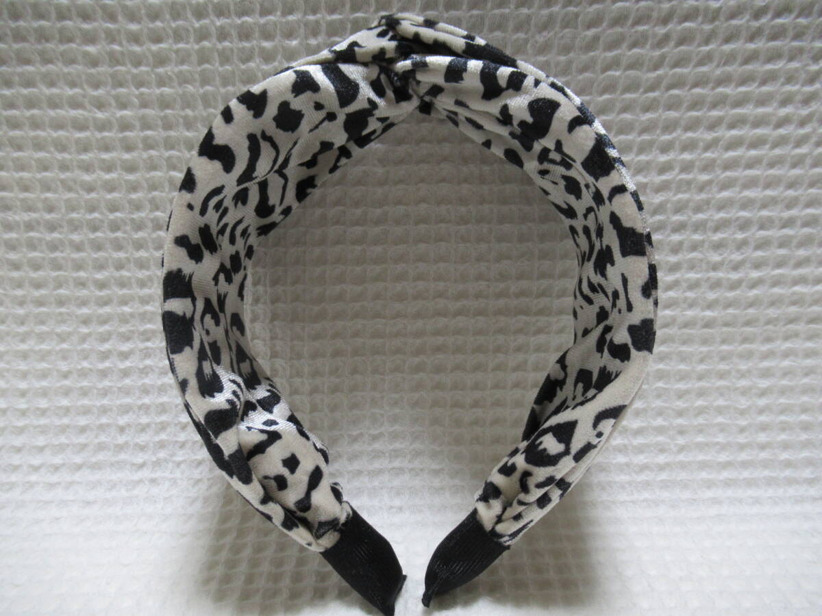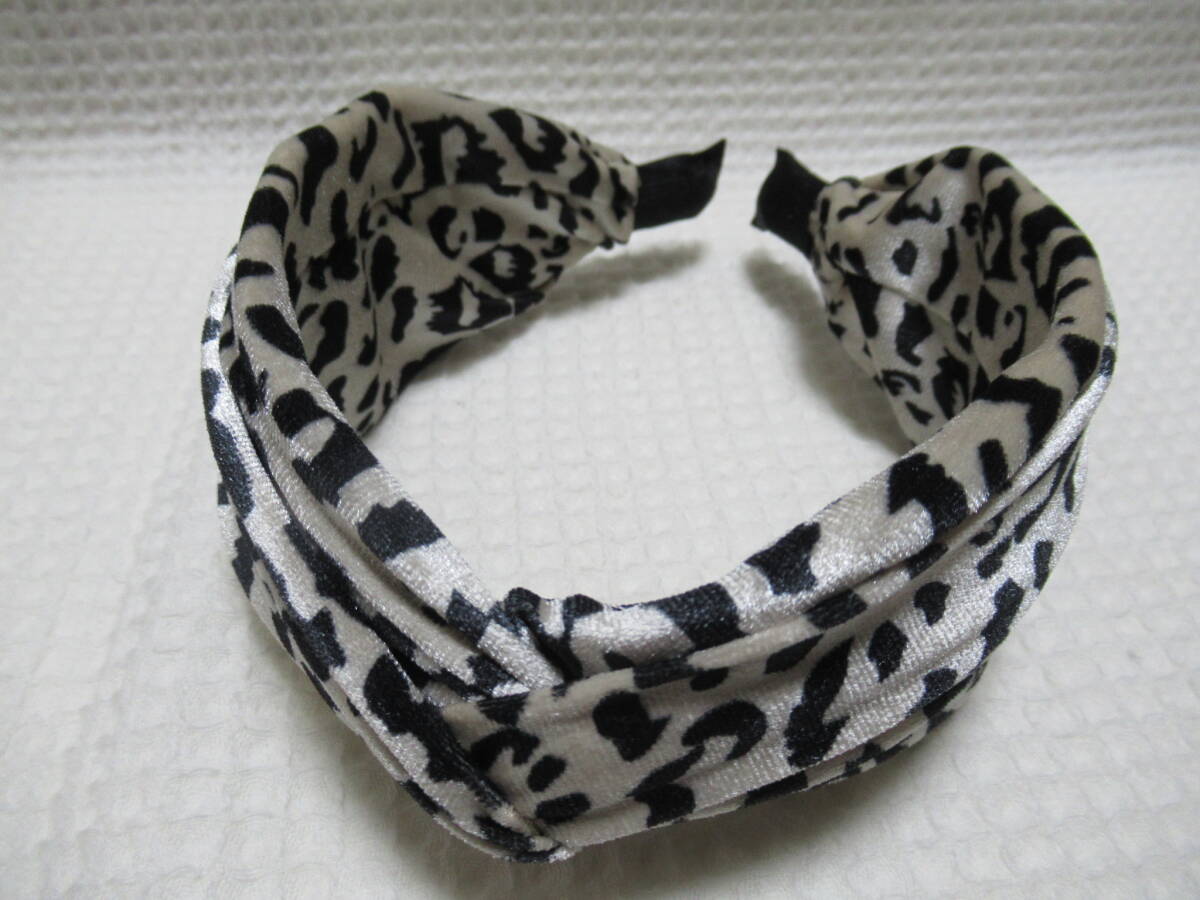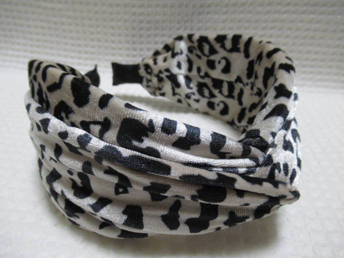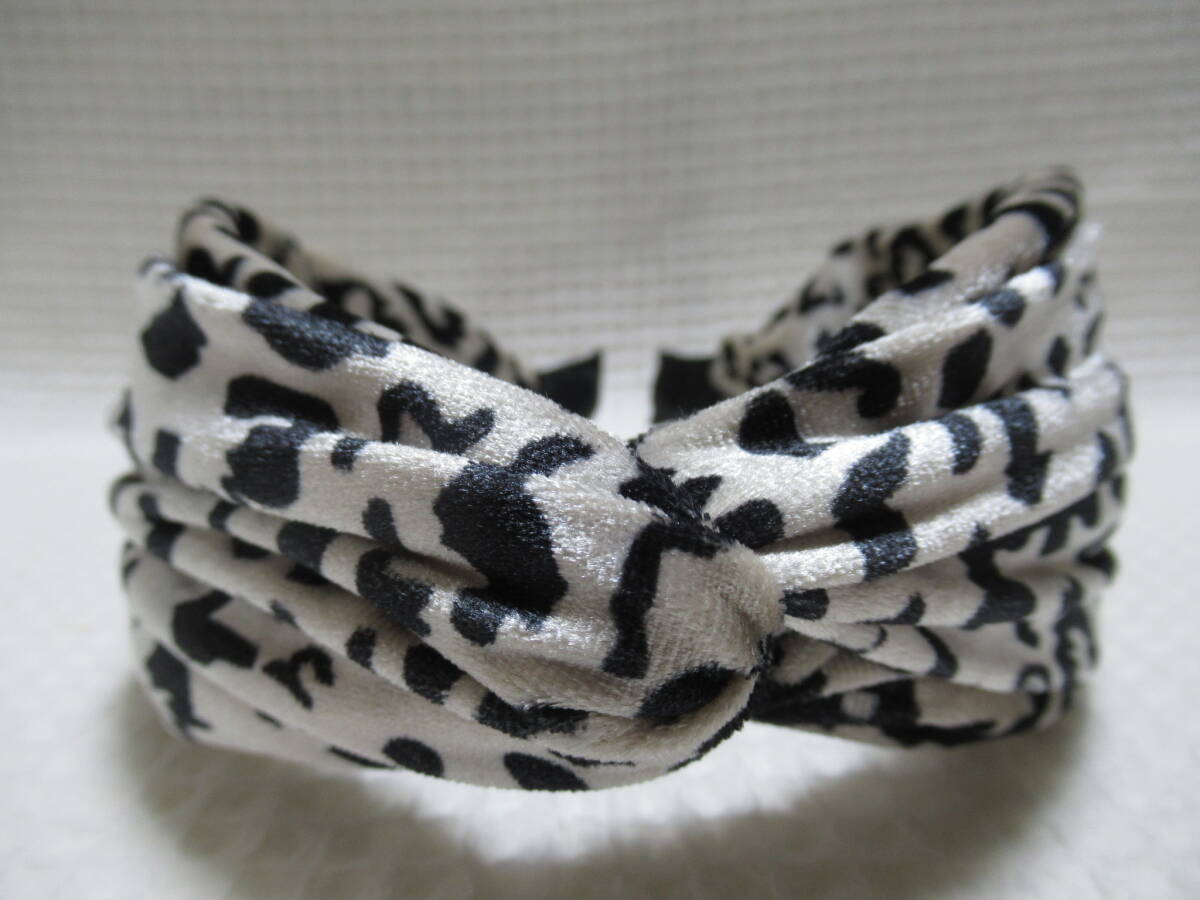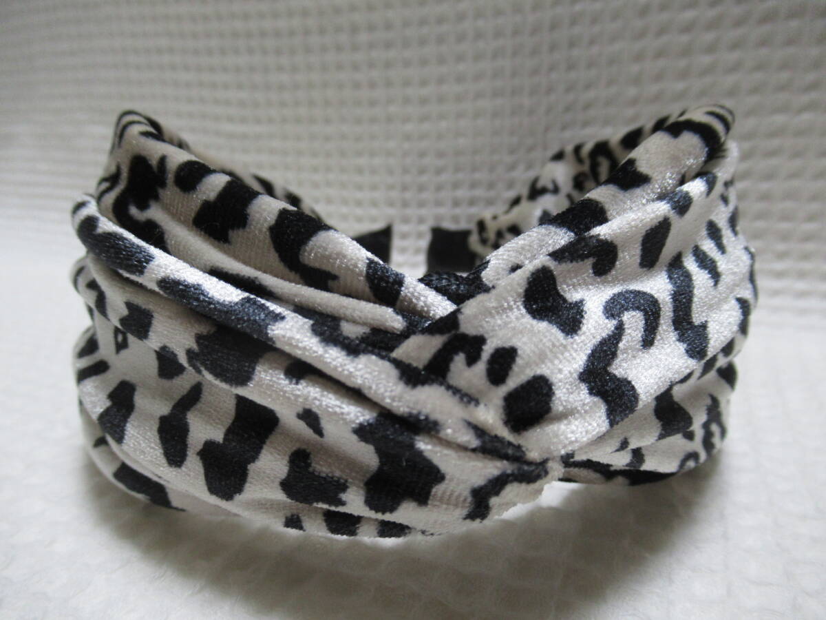 アニマル柄入りベロア生地のクロス型カチューシャ