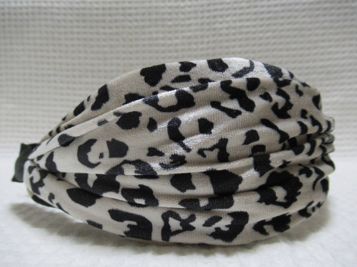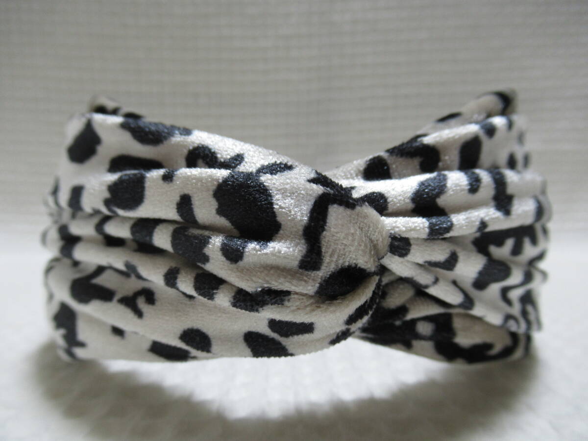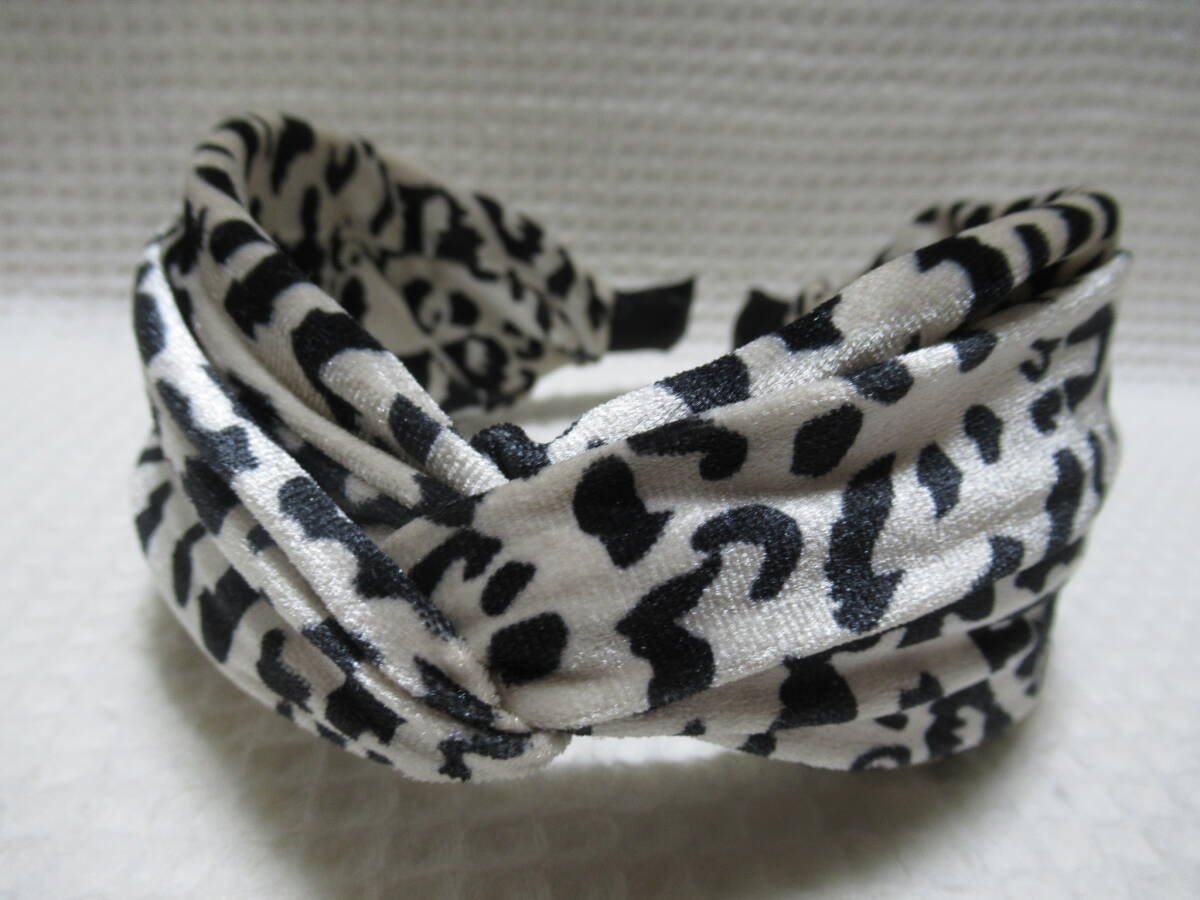アニマル柄入りベロア生地のクロス型カチューシャ アイボリー系