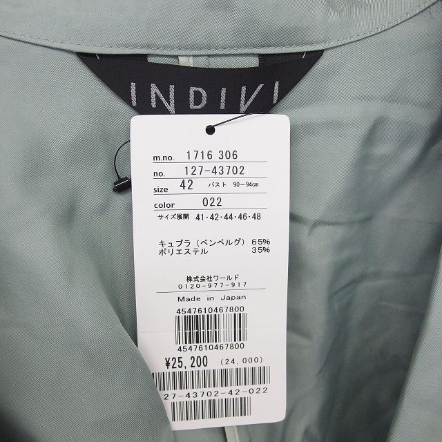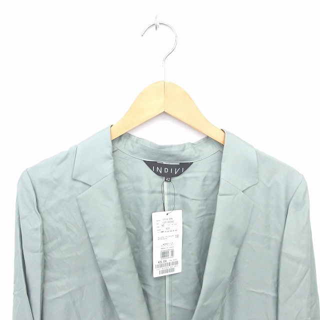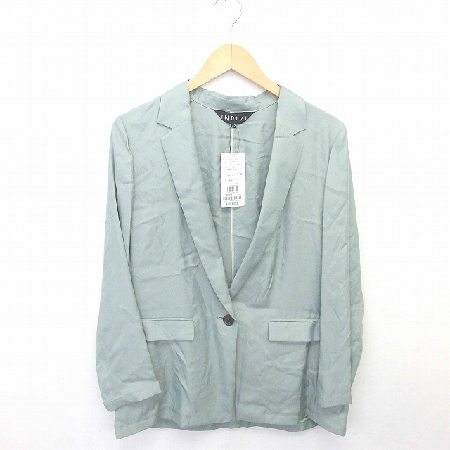 未使用品 インディヴィ INDIVI タグ付き テーラード ジャケット 薄手 無地 シンプル 42 緑 グリーン /TT レディース