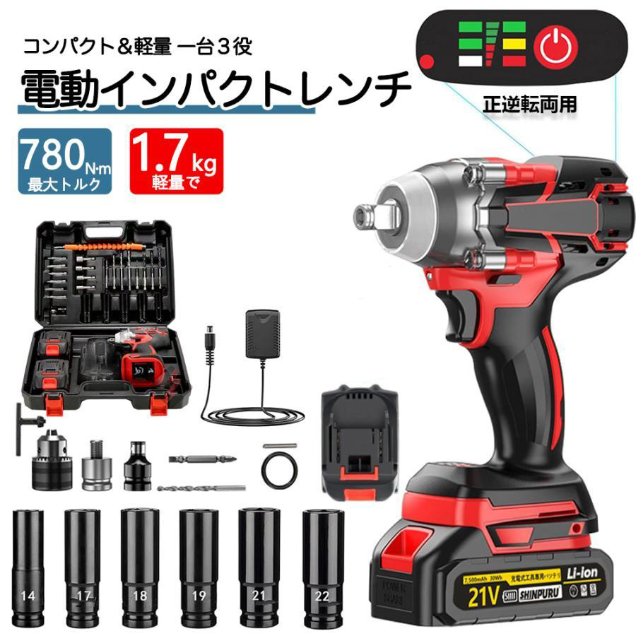 ナットのサイズに対応したソケットを差し込むだけで、すぐ応用でき、工具を使わず、自由に交換できる便利さを持ってます。「レンチ」-ナットとボルトを締めます。本体の差し込み角が12.7mm(1/2インチ)で、ほとんどの市販のソケットを使用でき、使えるに幅広いインパクトレンチです。「コードレスドライバー」チャックは、スクリュービットのねじ込みに適しています。六角ドリルでの掘削に運用可能です。LEDライトを搭載、回転と同時にLEDライトが点灯します。手元をしっかり照らしてくれるので、昼夜を問わず作業が可能です。